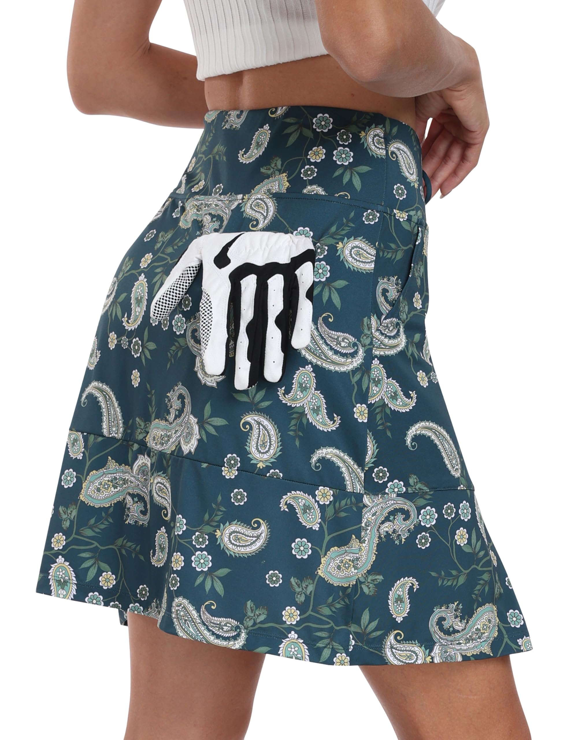 Kõrge vöökohaga naiste tenniseselik sisepükstega, tumeroheline (S)