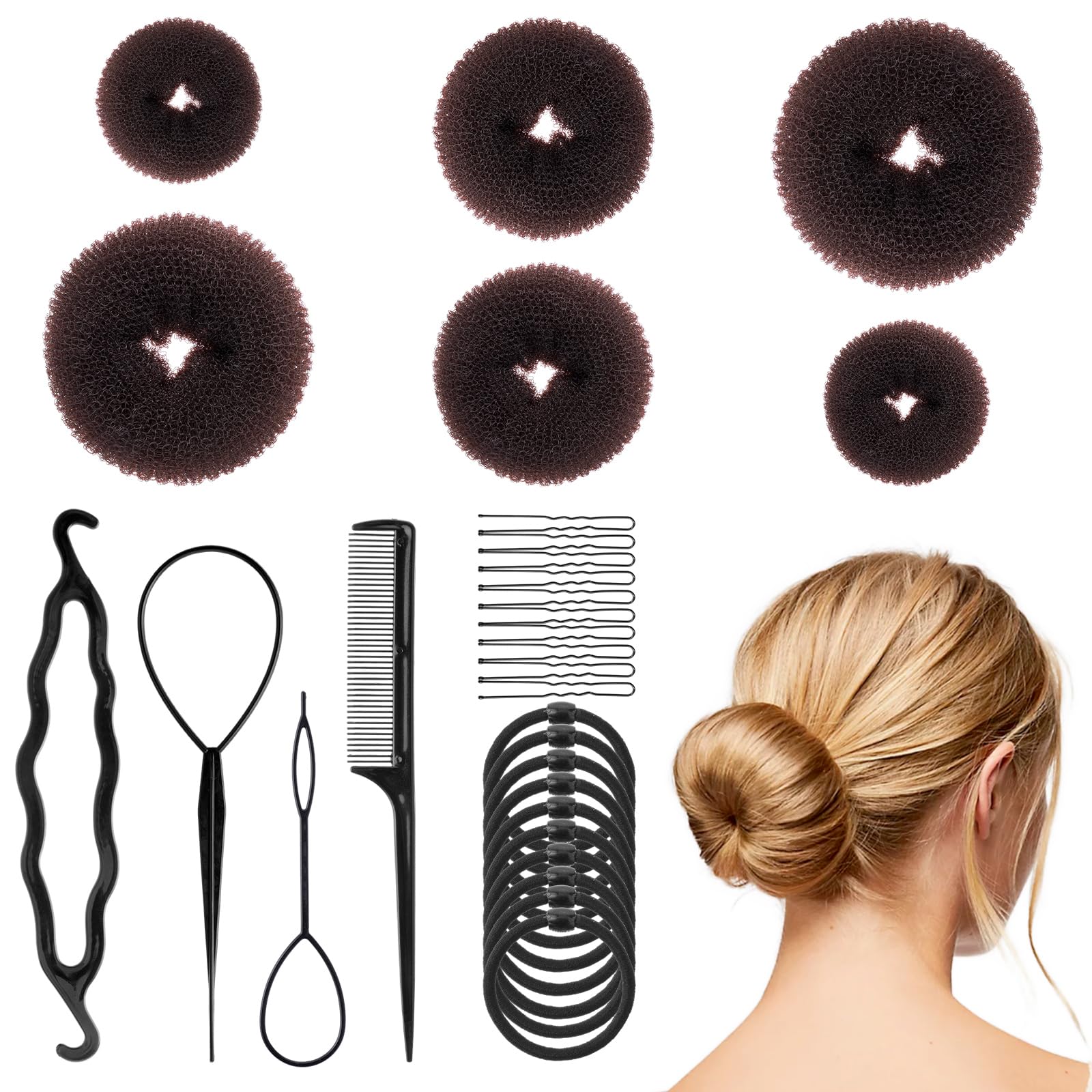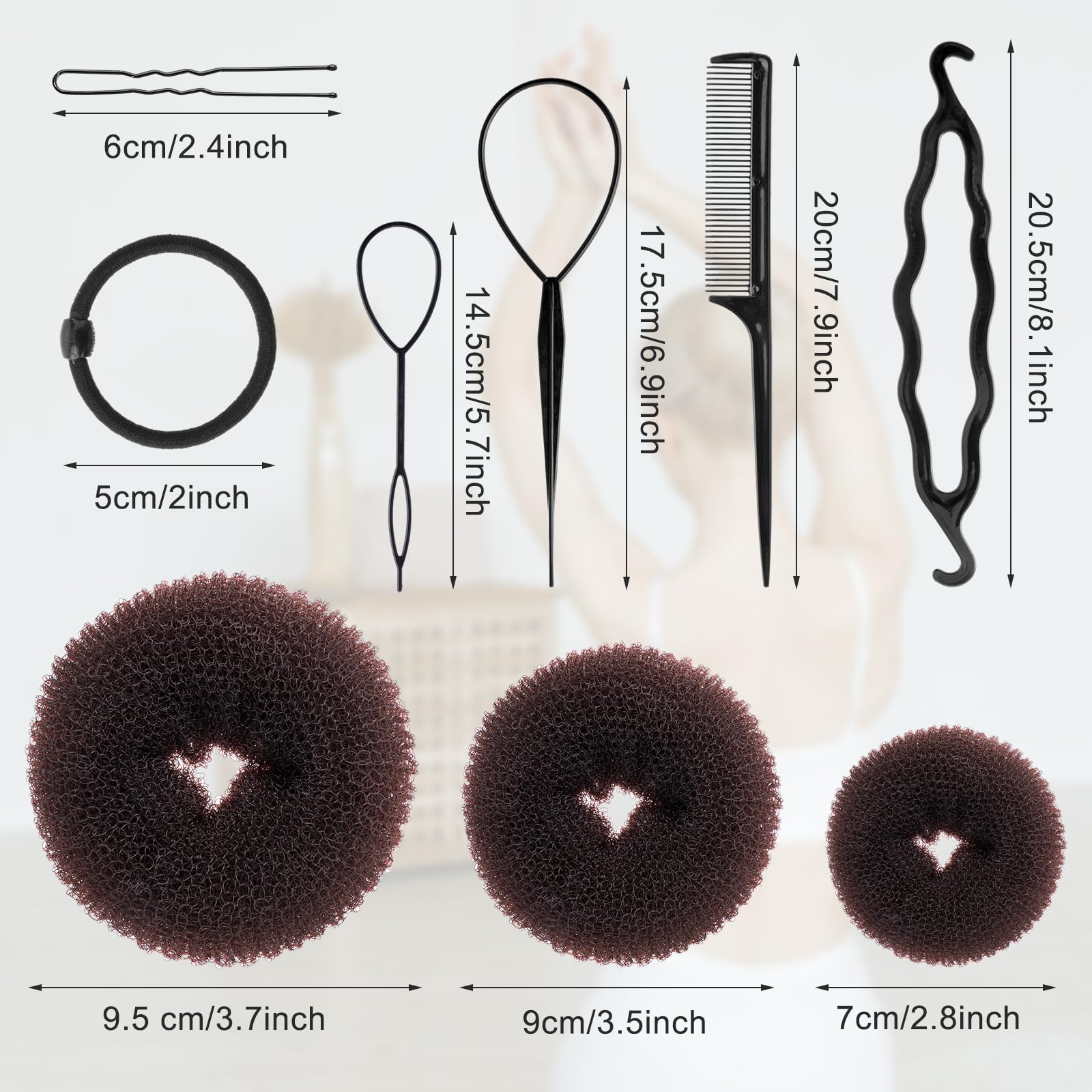 Krunnitegemise komplekt kammide, juuksekummide ja klambritega, kohvipruun (6tk)