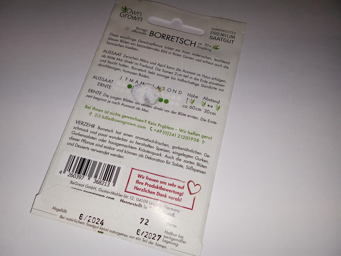 Seemned miniporgand, sobib ka näiteks rõdukastis kasvatamiseks (tekst pakendil on saksakeelne)
