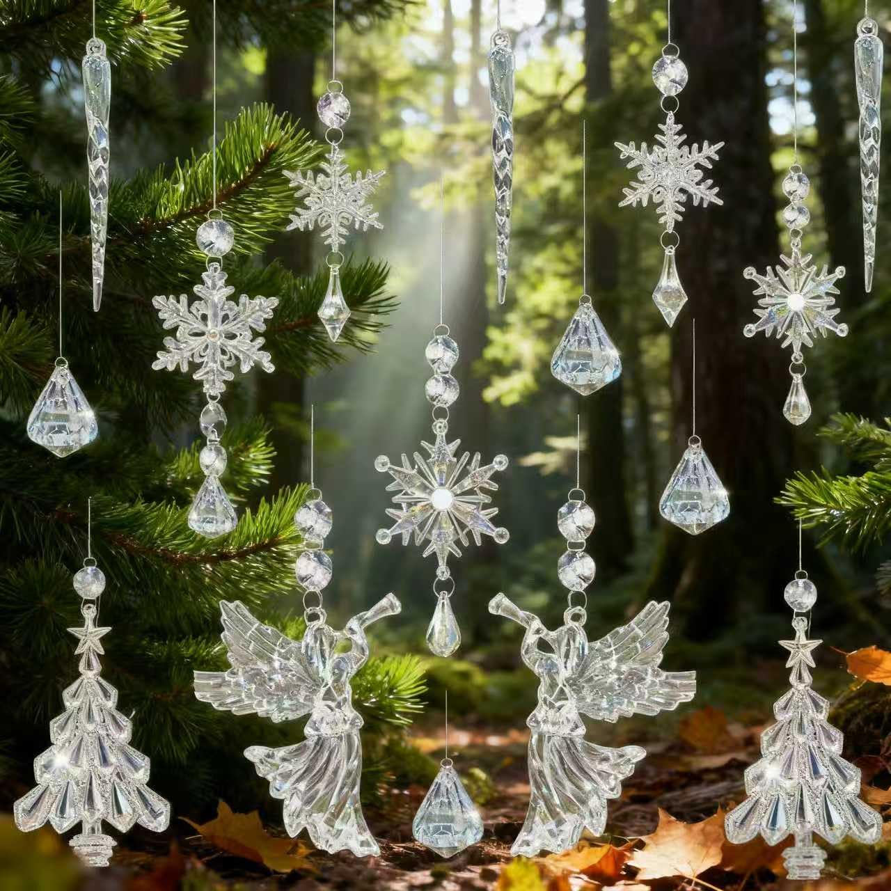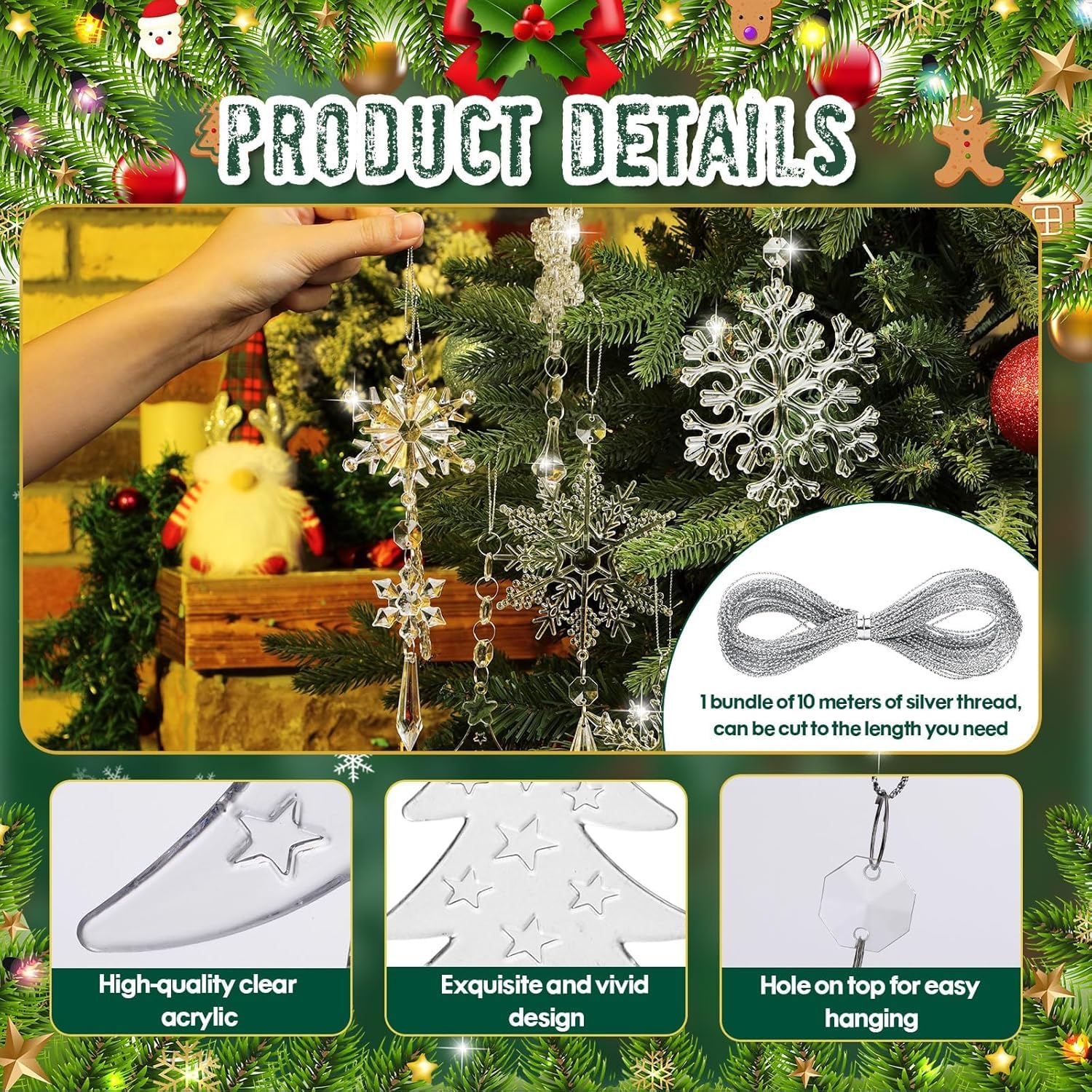 Kuuseehted, purikad ja lumehelbed, mitmevärvilised