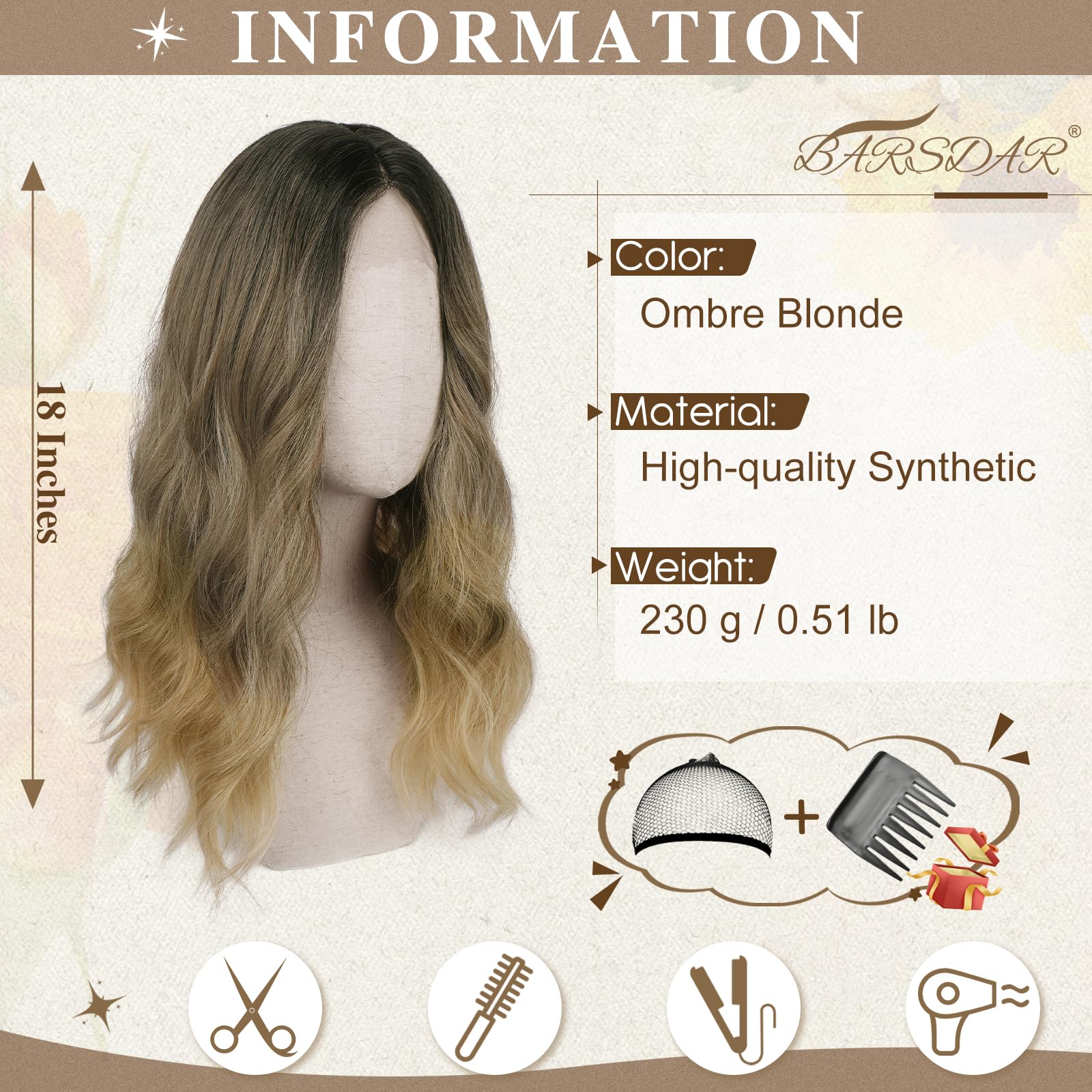 Laineline ombre-parukas, blond (46cm)