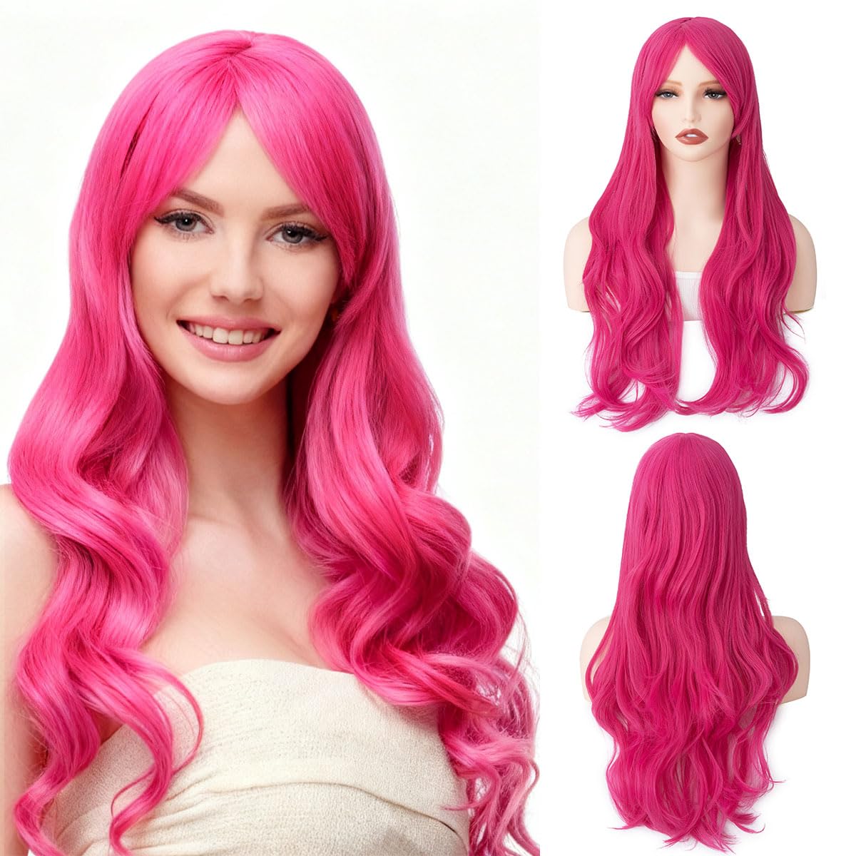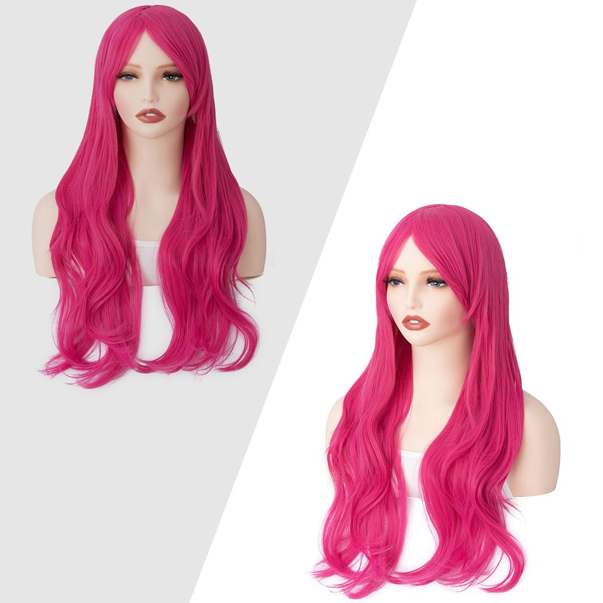 Laineline pikk parukas tukk-osaga, erkroosa (70cm)