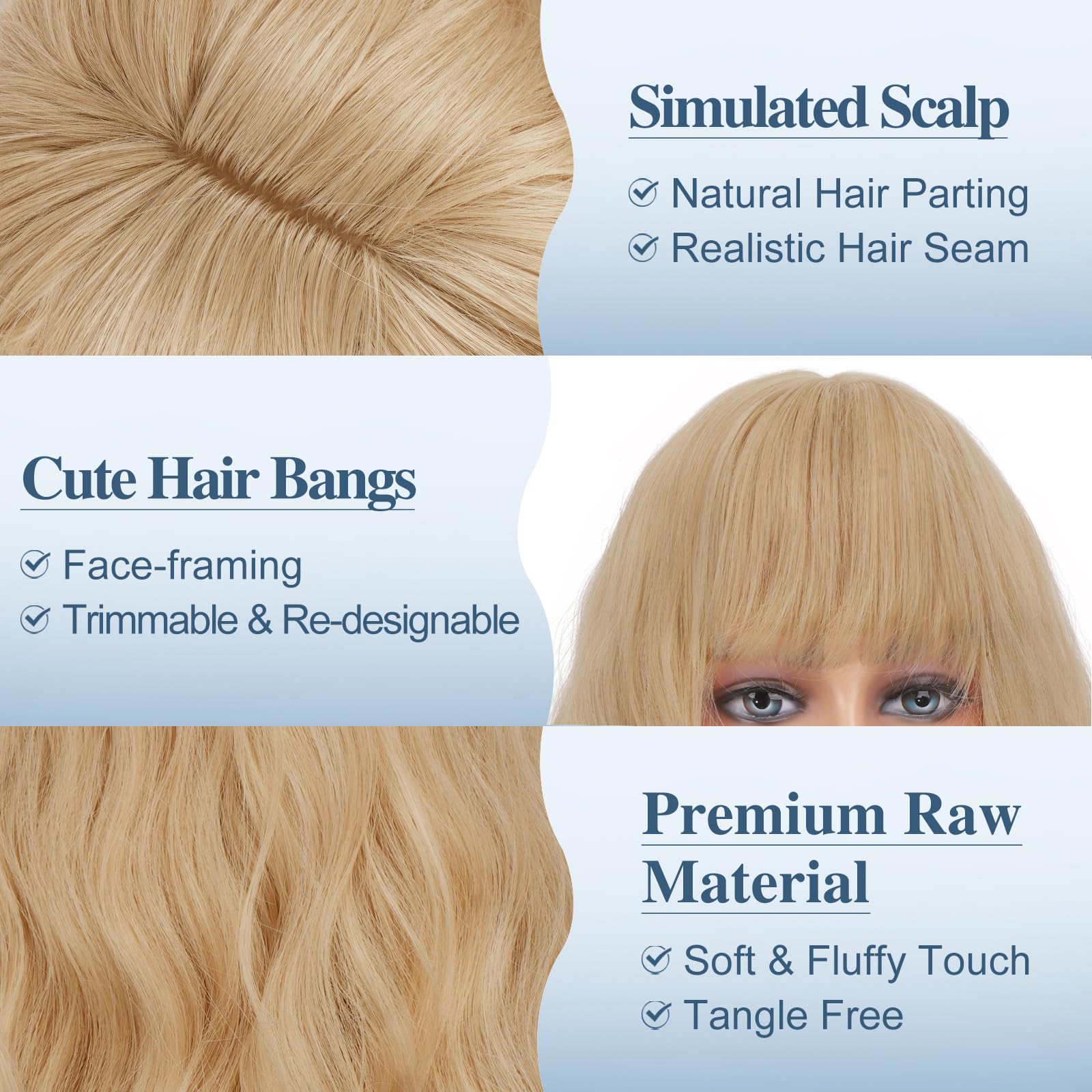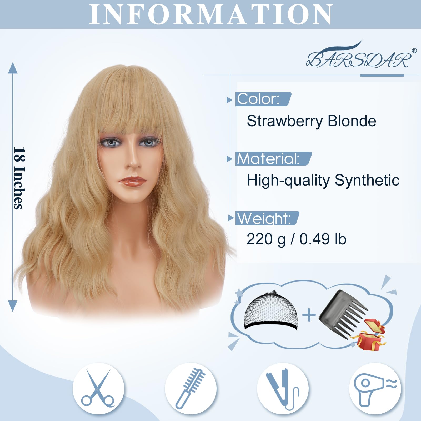 Laineline tuka ja lokkidega parukas, maasikablond (46cm)