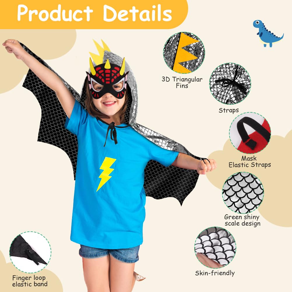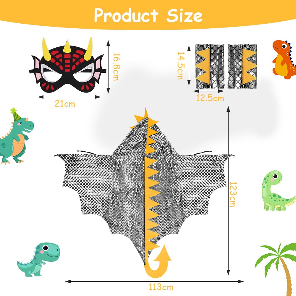 Laste dinosauruse kostüüm maskiga (3 osa, hõbedane, s. 110cm)