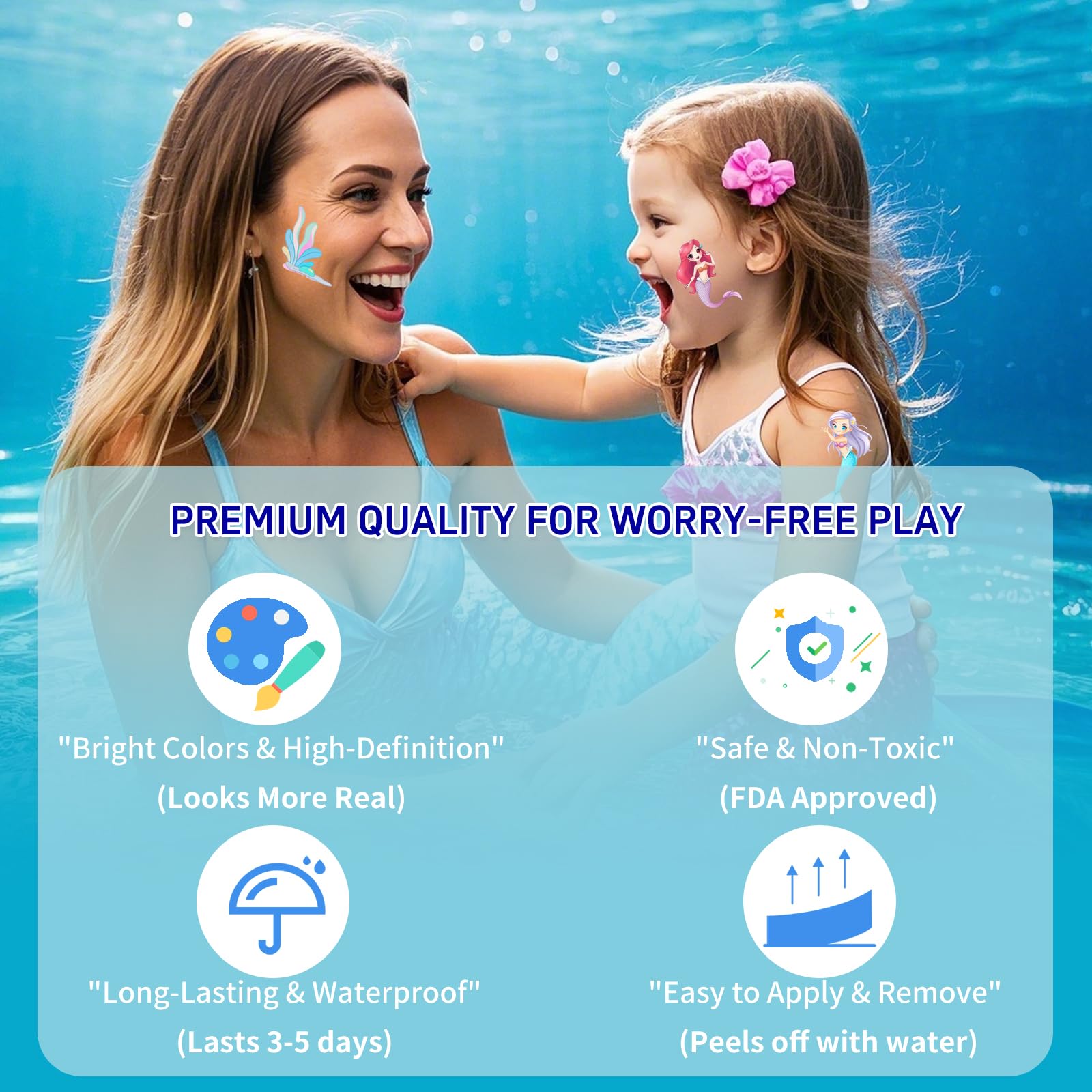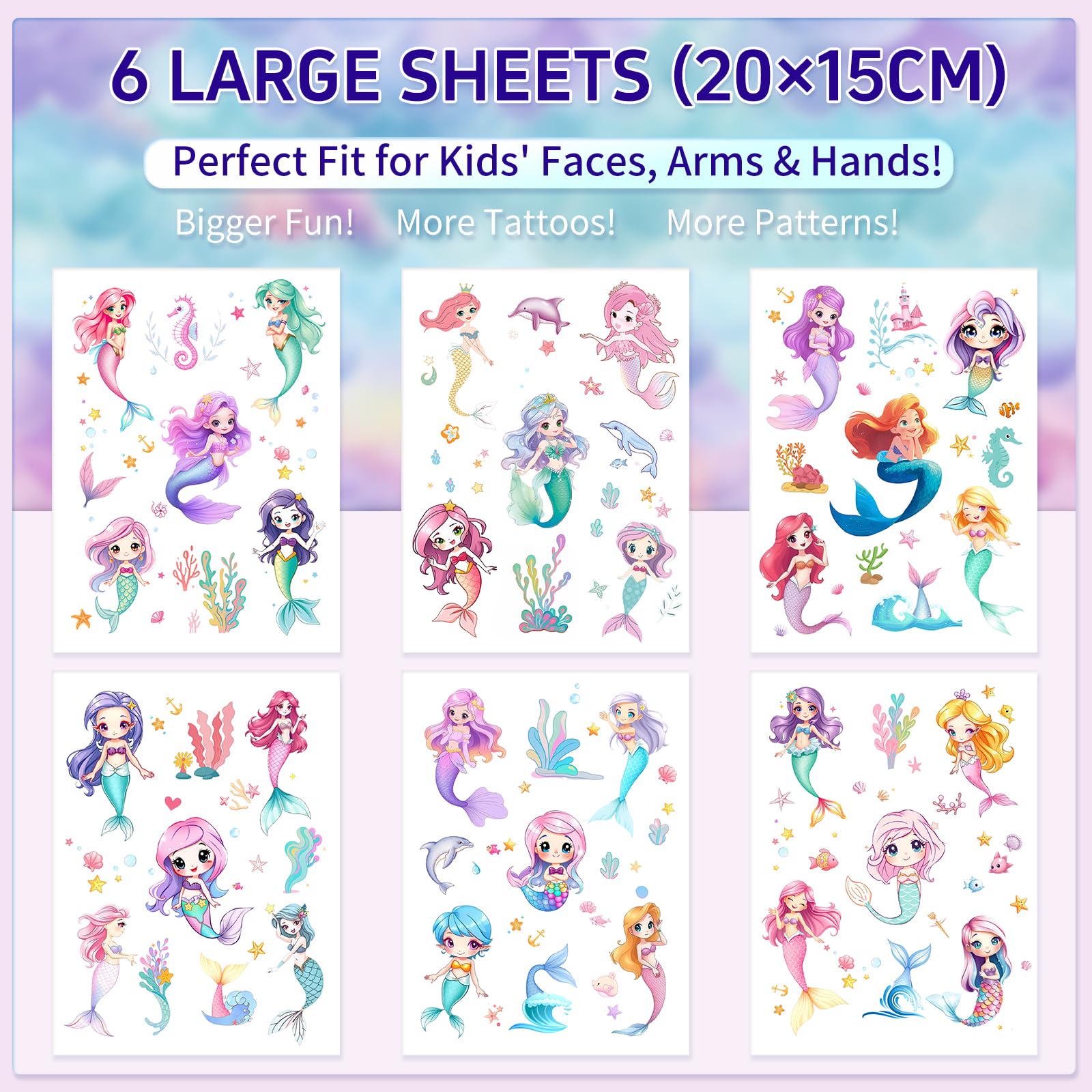 Laste merineitsi ajutised tätoveeringud, veekindel, nahasõbralik