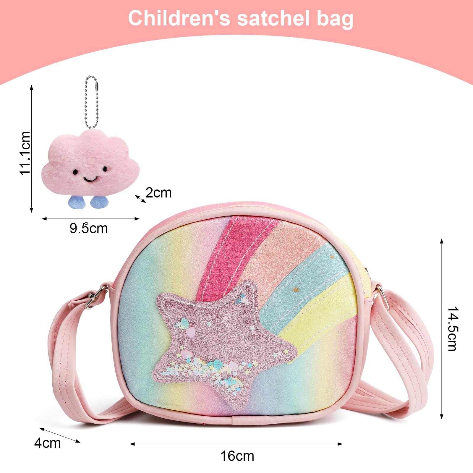 Laste õlakott, sädelevate tähtedega, roosa