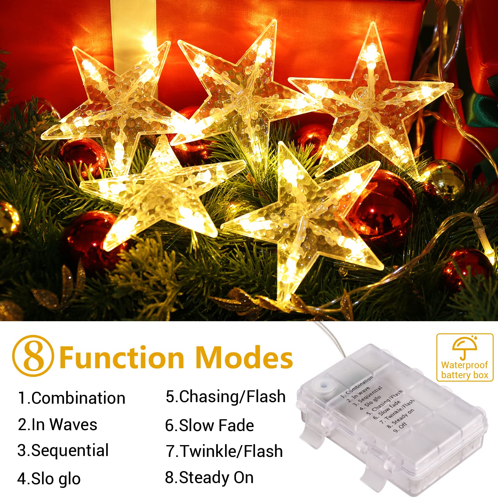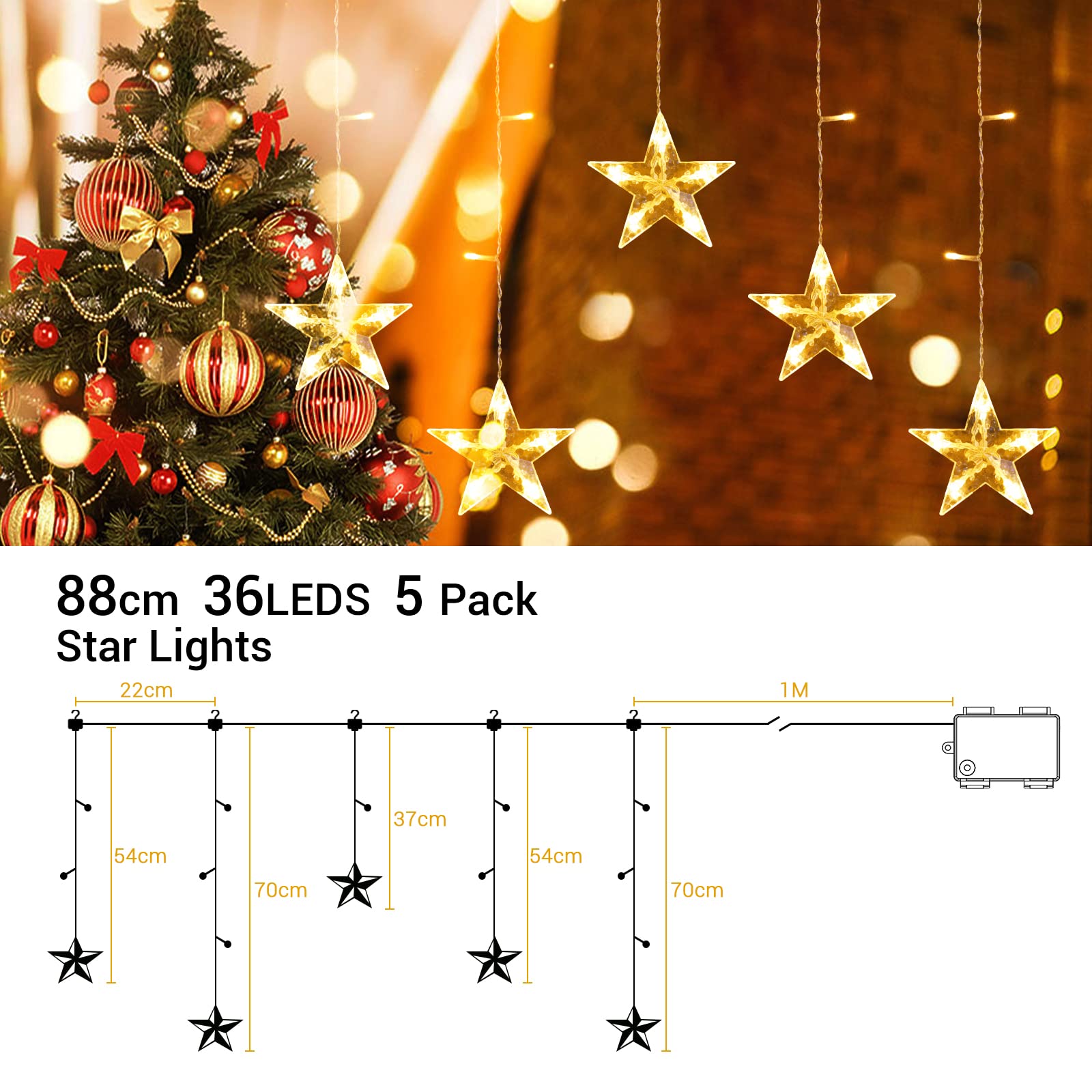 LED akna-valguskaunistus tähtedega, soe ja värviline valgus 88cm kogus