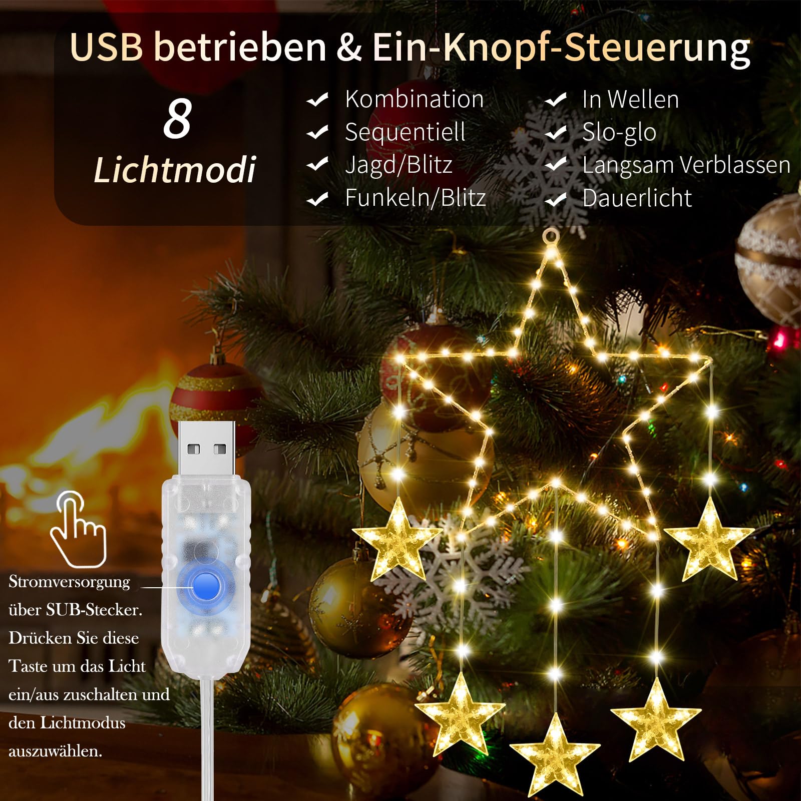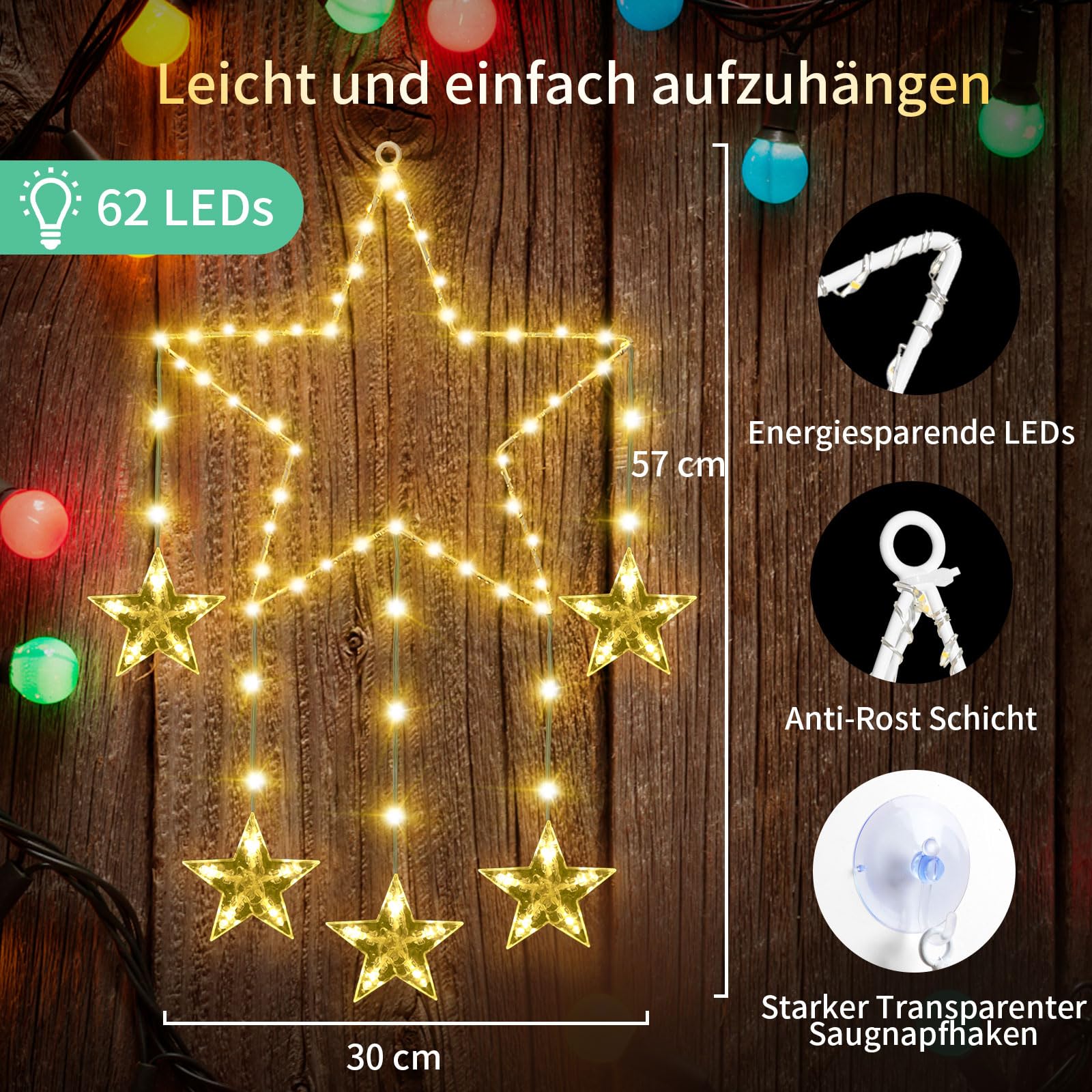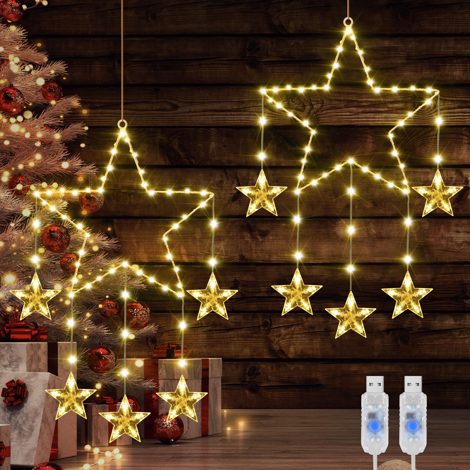 LED jõulutähed akna kaunistamiseks, soe valgus (2tk, 62 LED)