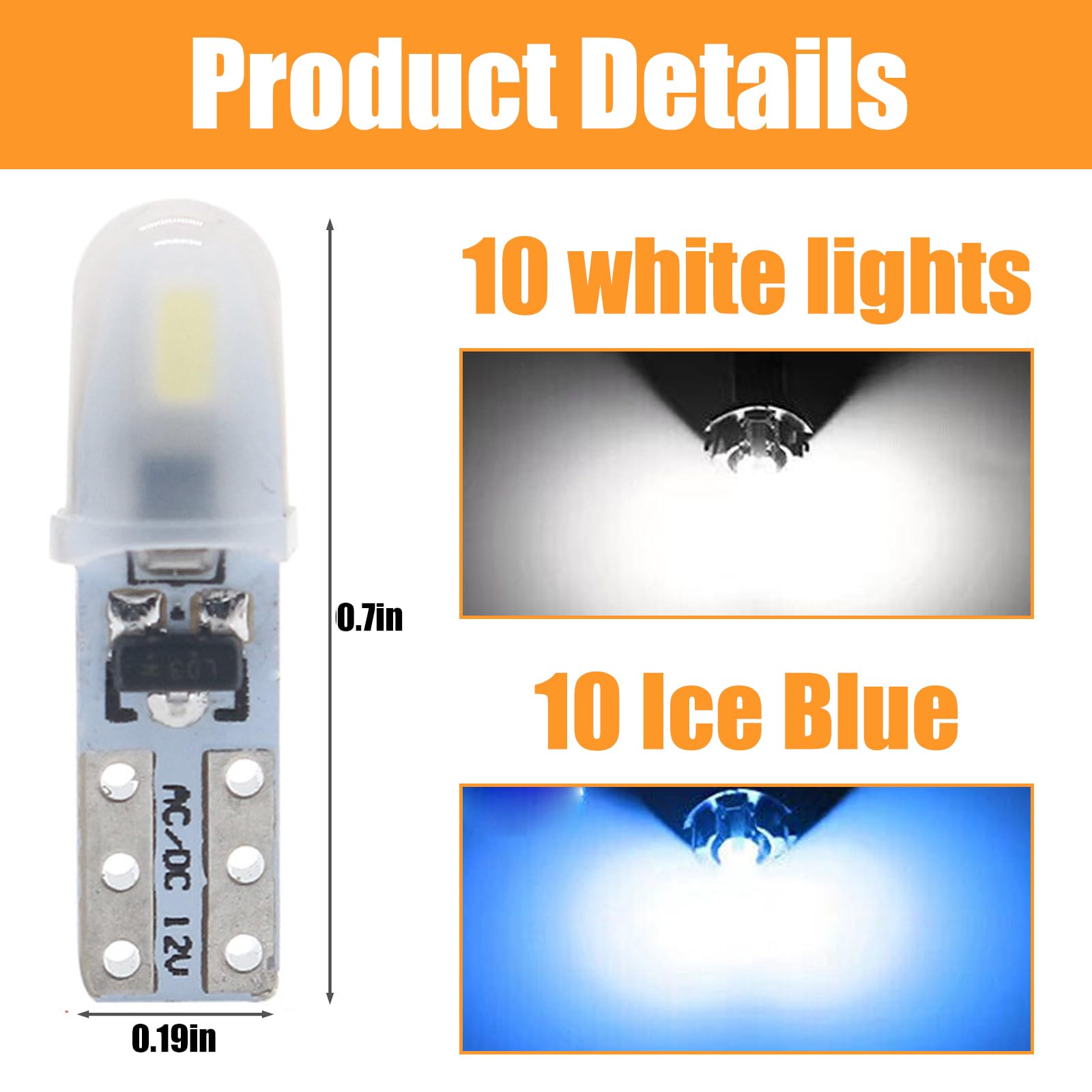 LED pirnid spidomeetrile, jääsinine ja sinine (20tk, 12V, T5)