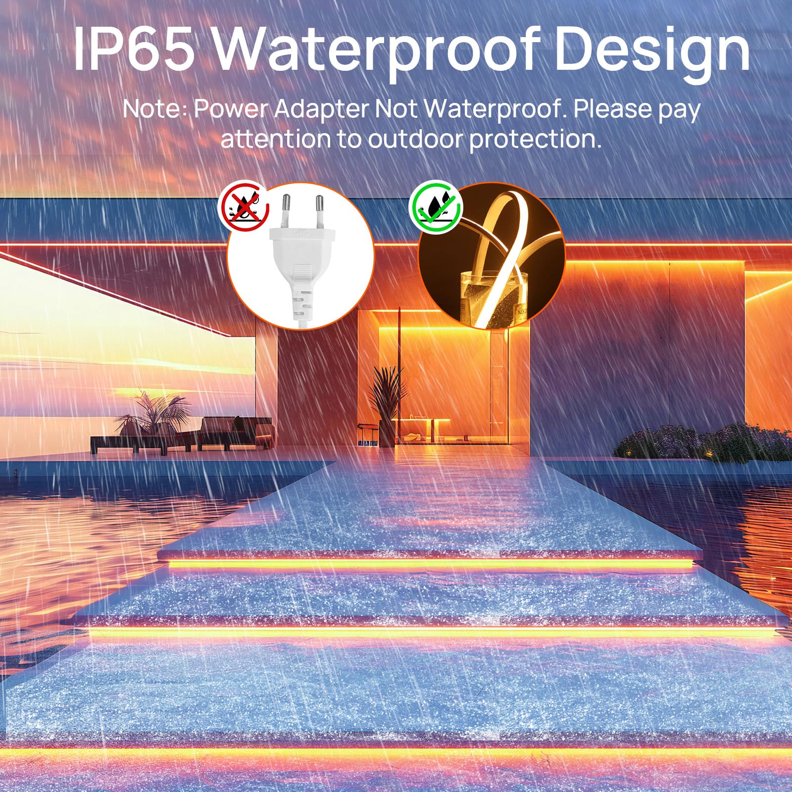 LED riba, veekindel, painduv, soe valgus, toiteallikaga (2m, 10mm)