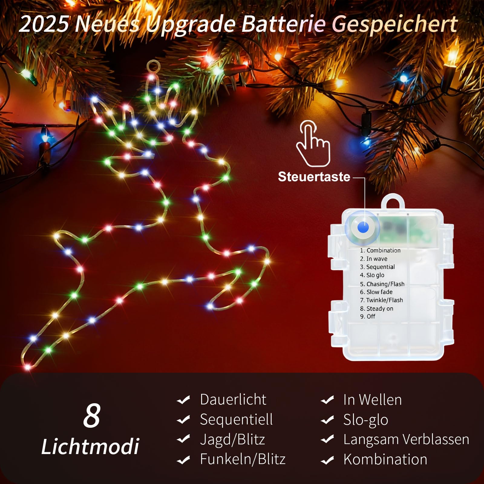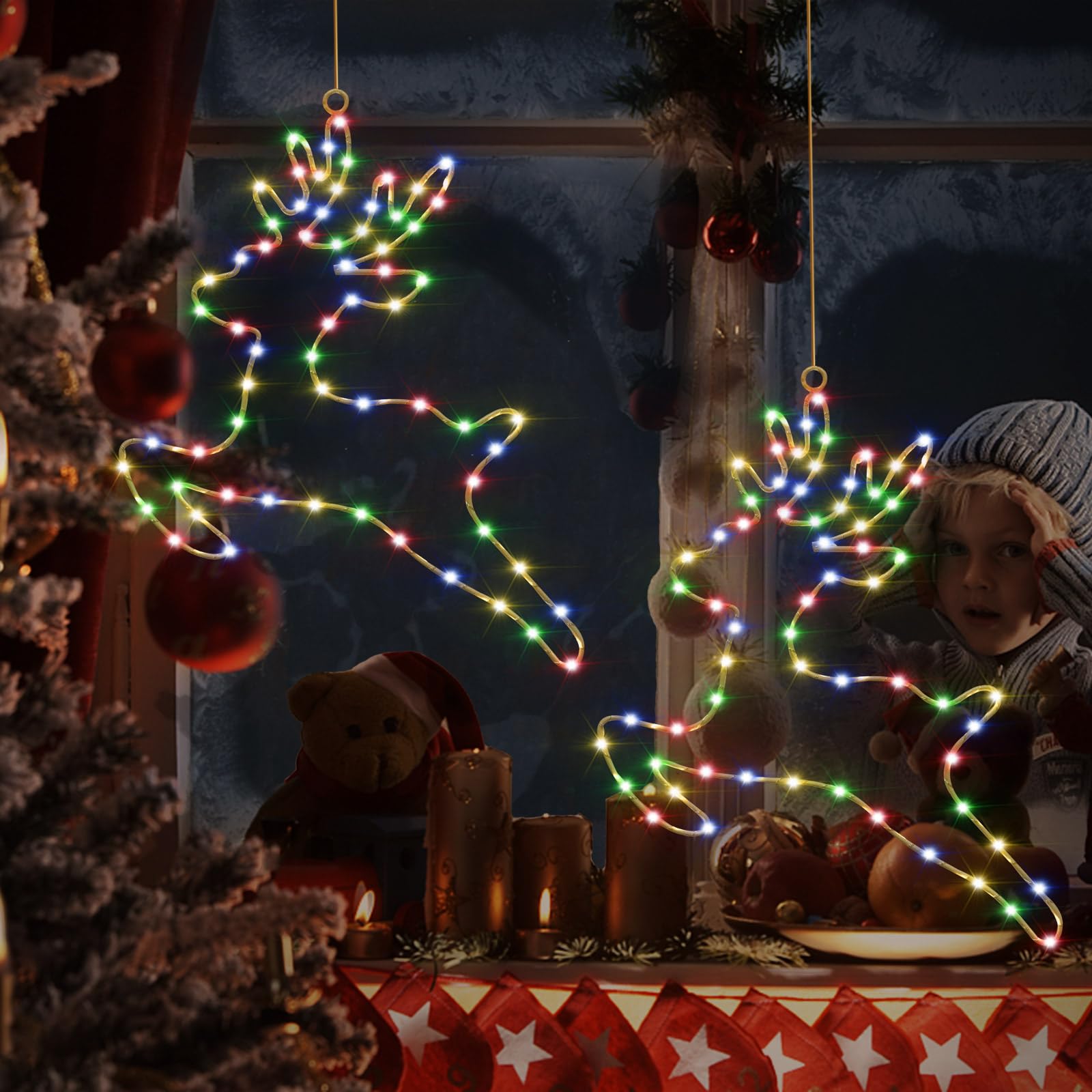 LED valguskett põhjapõtradega, valge, patareidega (2tk, 80 LED)