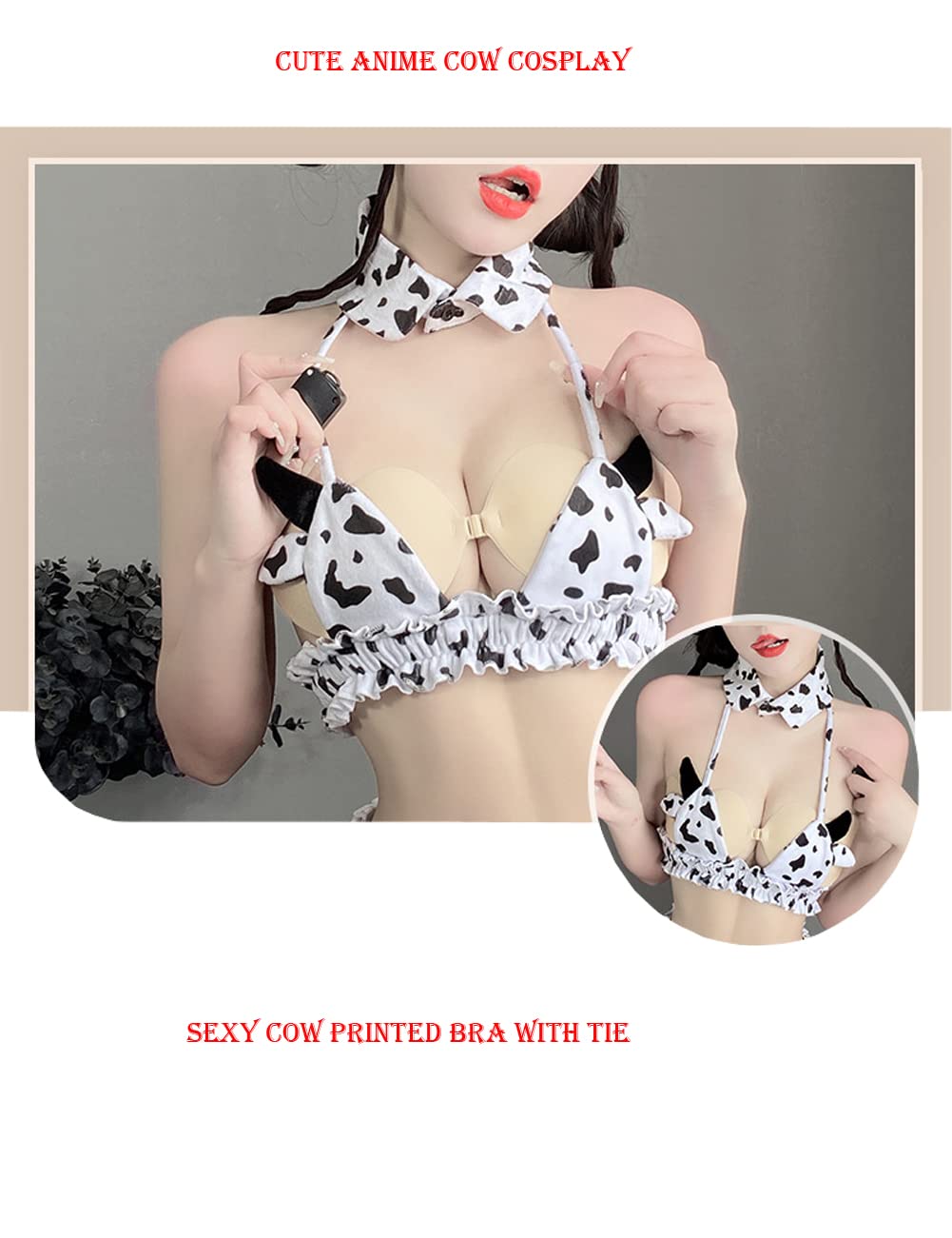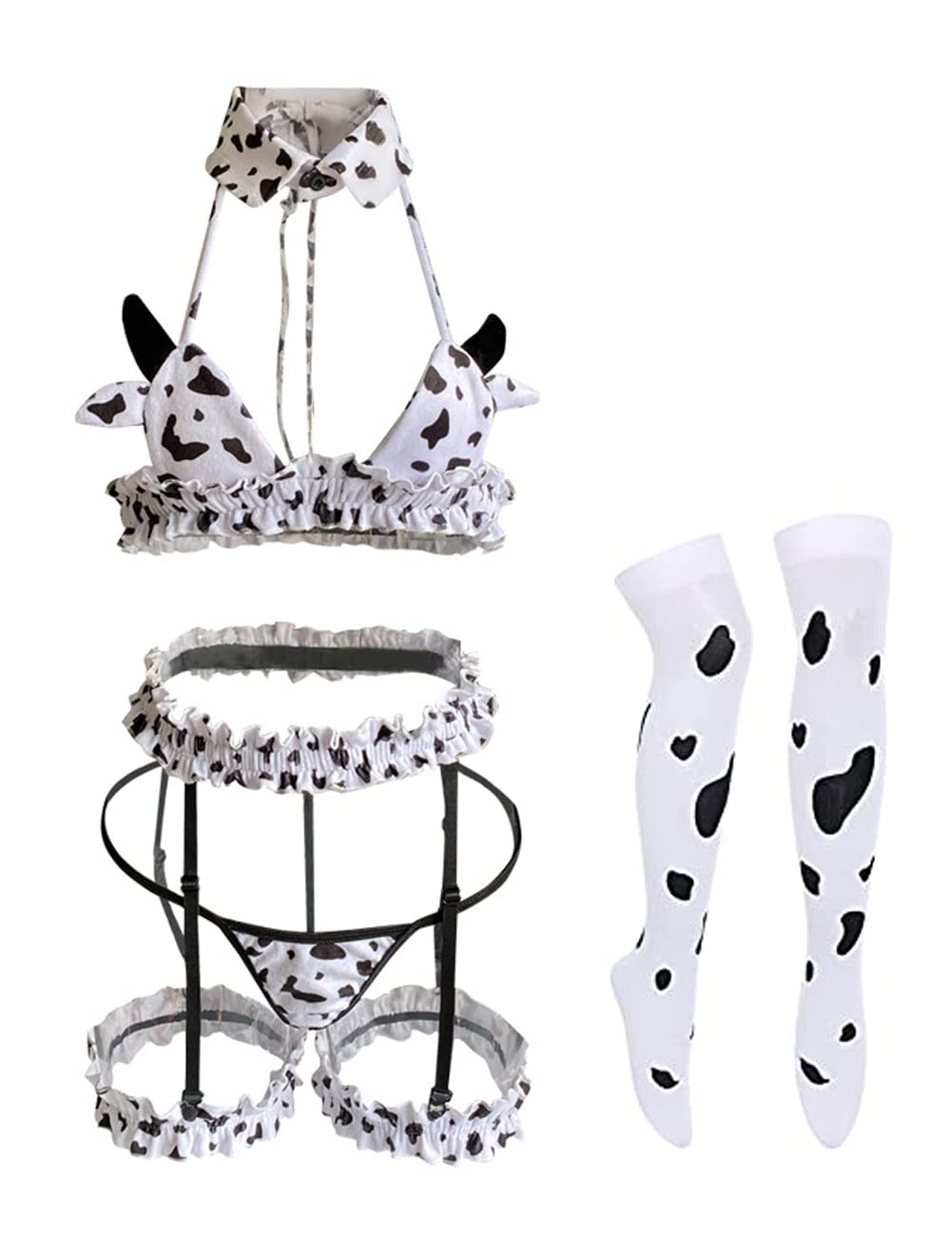 Lehmamustriga cosplay pesukomplekt, valge