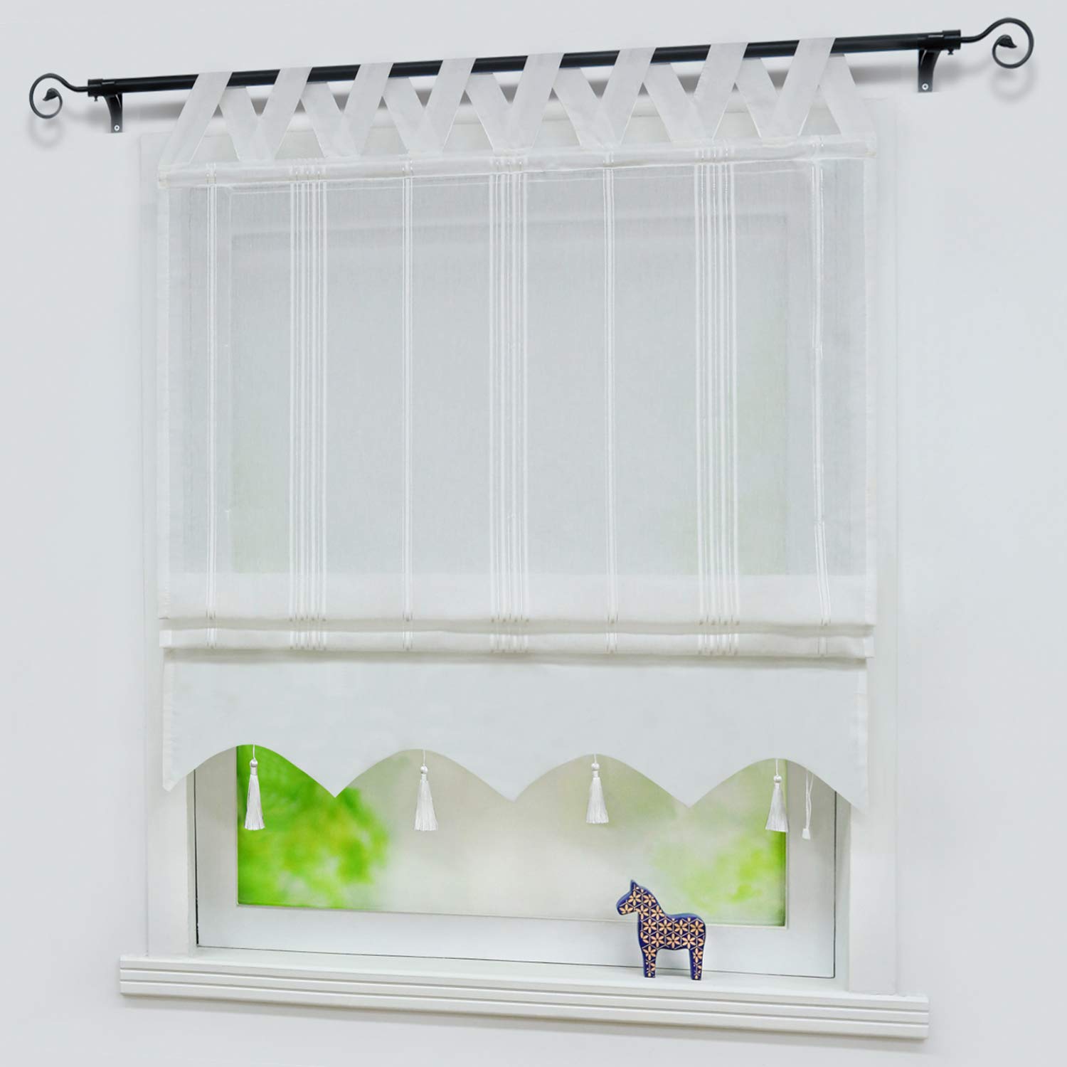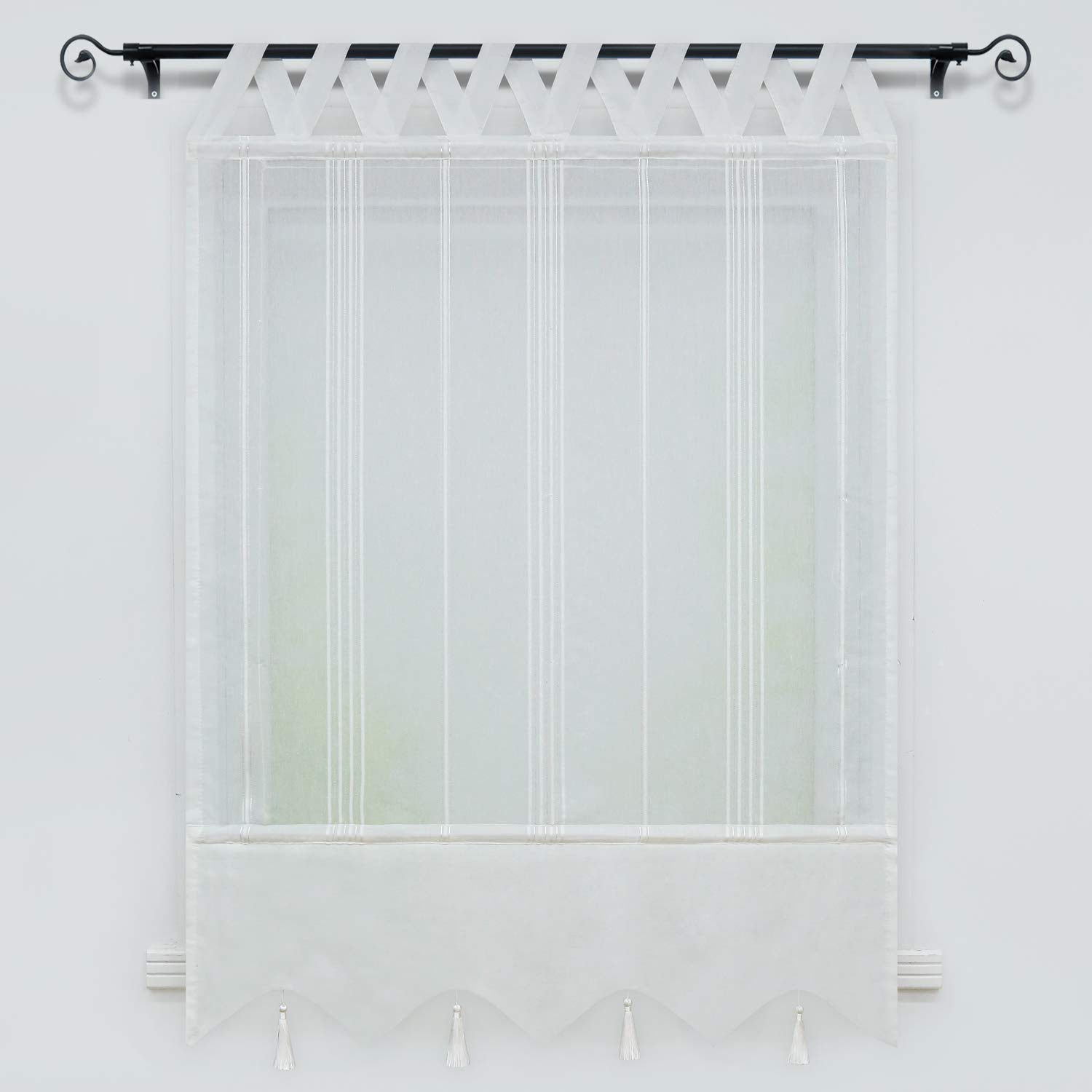 Linase ilmega üles tõmmatav kardin, püsttriipudega, valge (140x140cm)