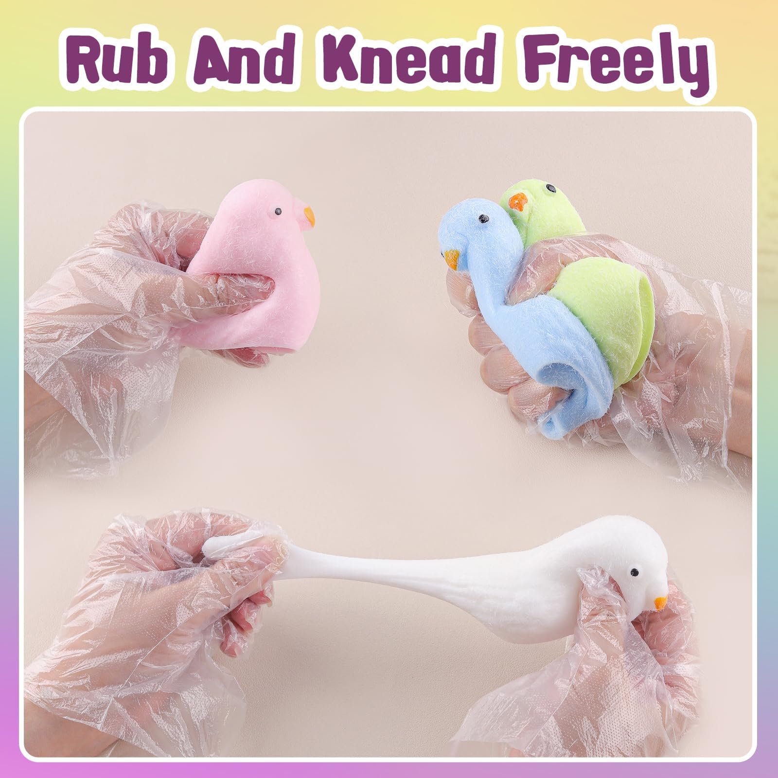Linnuga stressileevendusmänguasjad, pigistatavad (4tk, kollane, sinine, valge, roosa) kogus