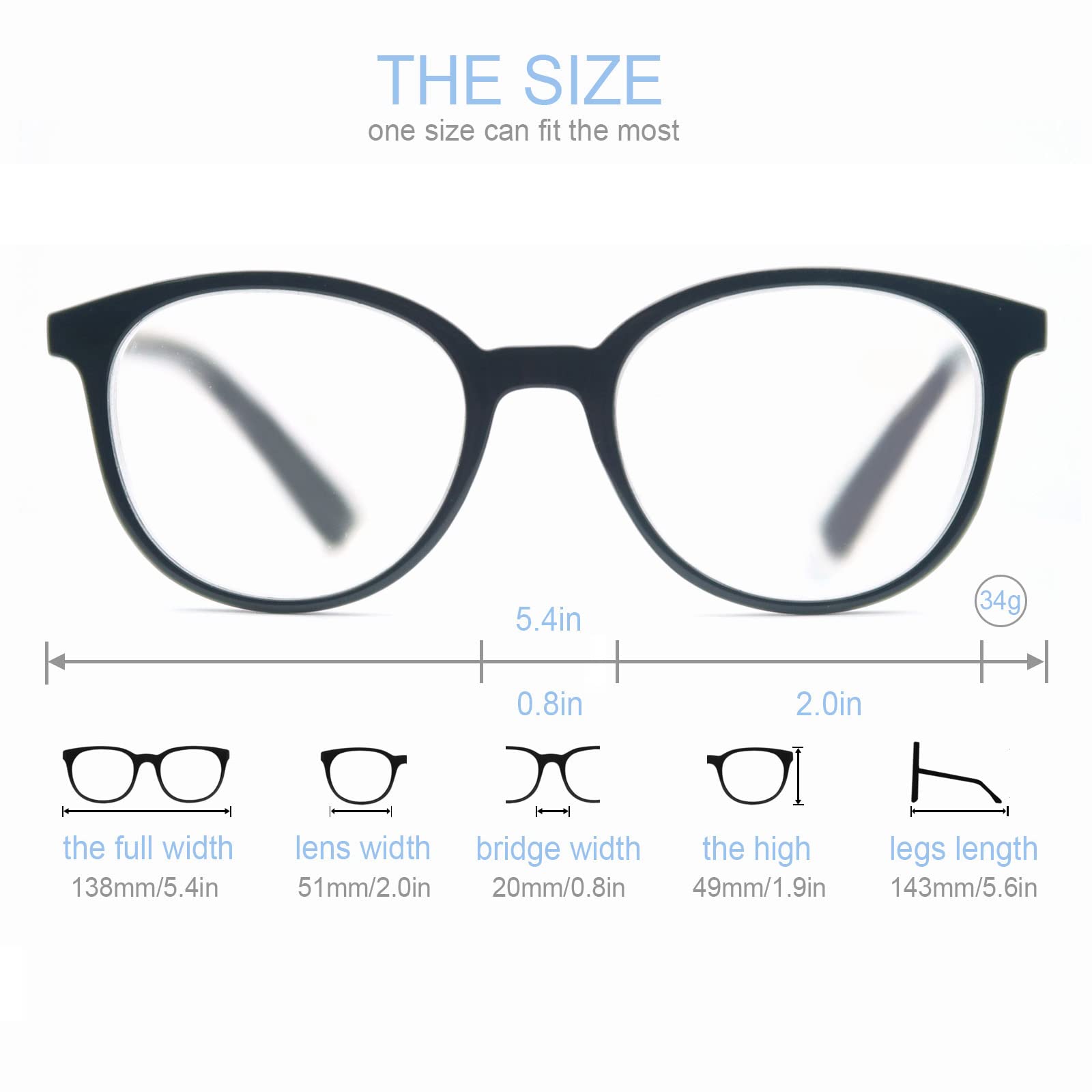 Lugemisprillid, ümmargused +2.0 4 paari