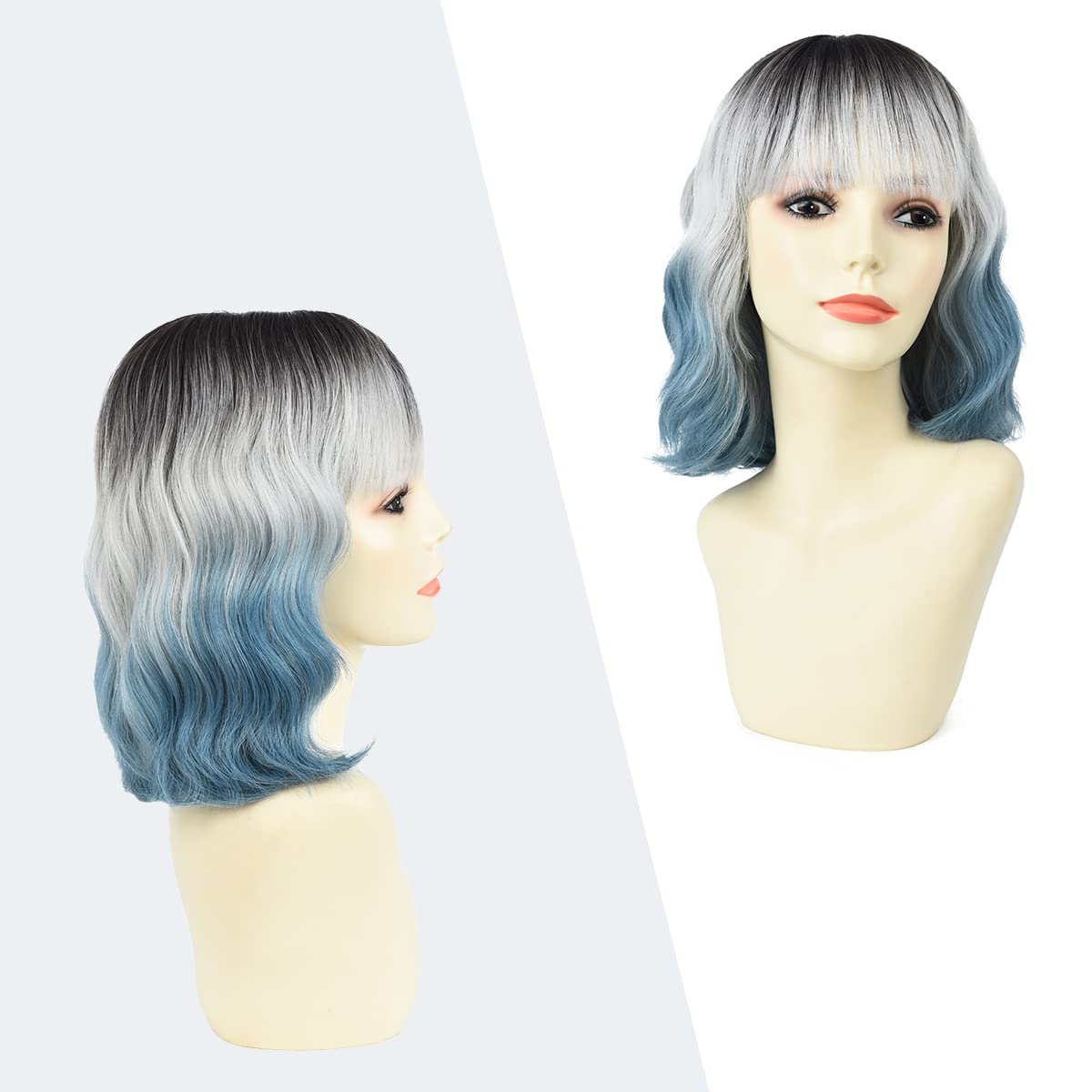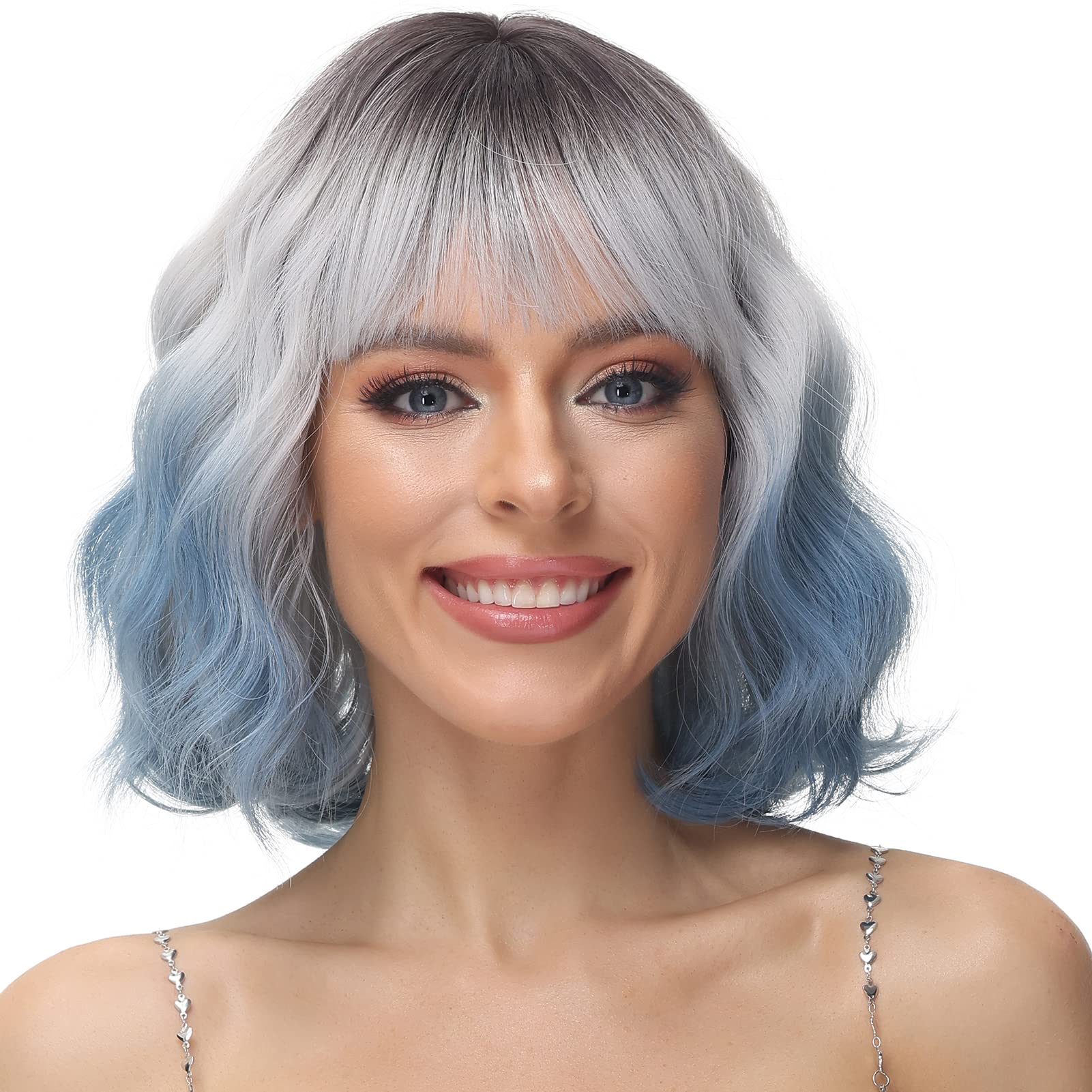 Lühike parukas tukaga hõbedane-sinine