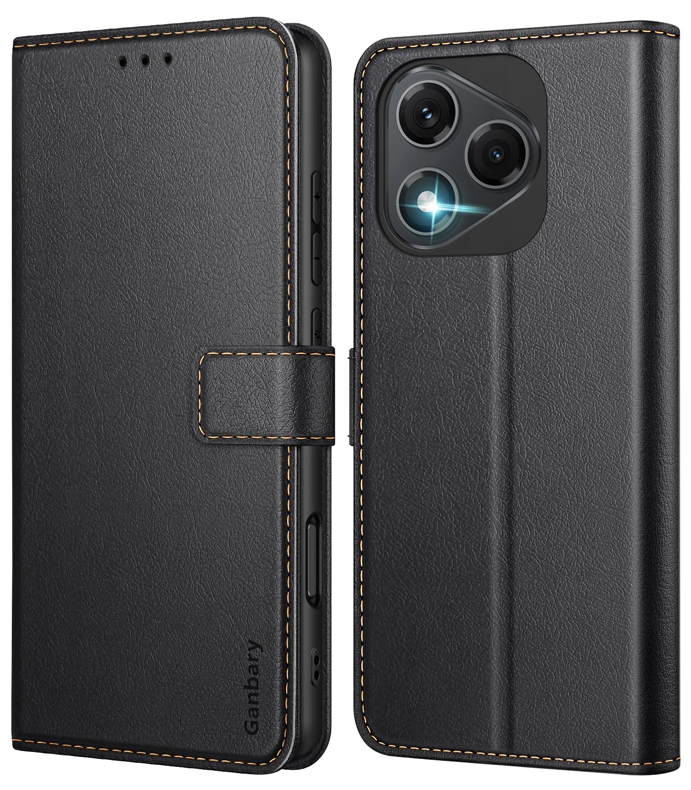 Magnetiga klapp-telefonikaaned, nahast, must kogus