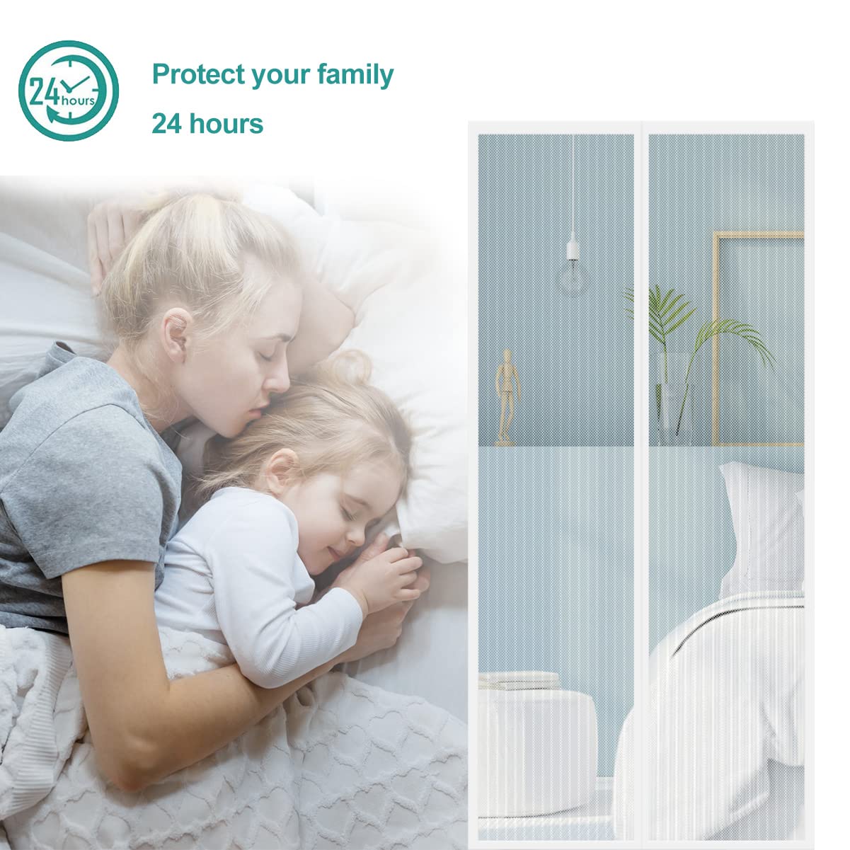 Magnetiline putukavõrk uksele, valge, automaatselt sulguv (90x220cm)