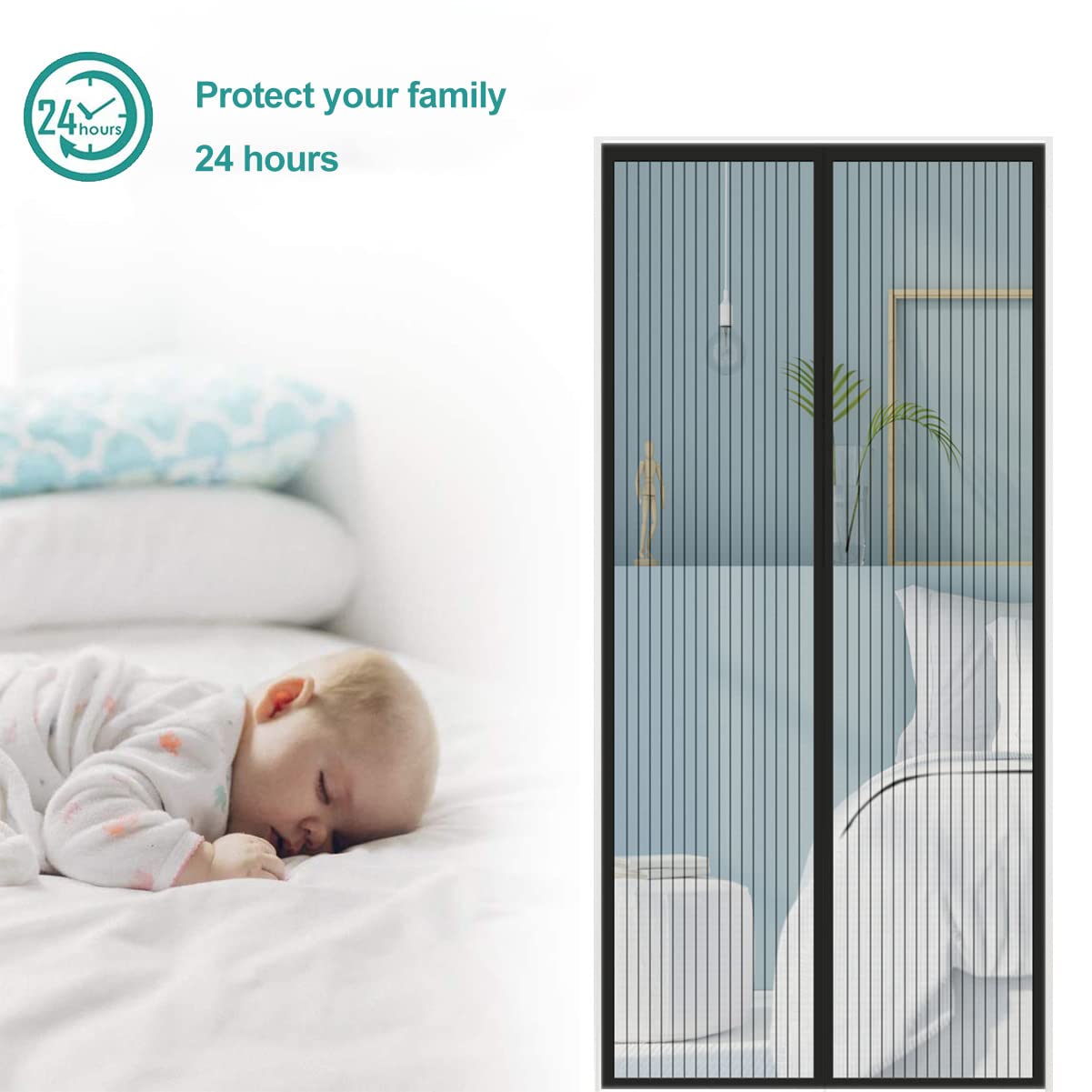 Magnetiline uksevõrk-sääsevõrk, isekinnituv, must (70x210cm)