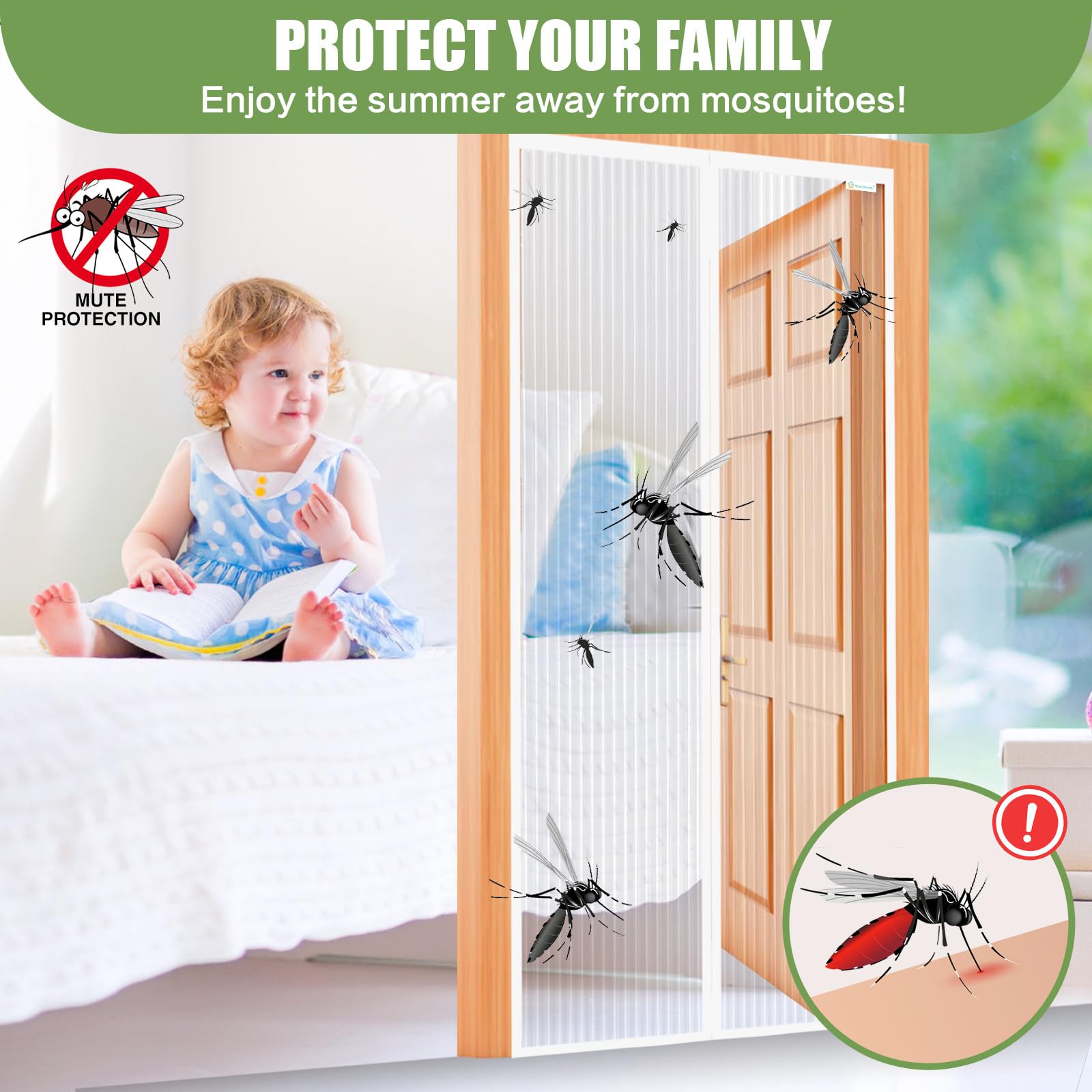 Magnetiline uksevõrk-sääsevõrk, valge (150x215cm)