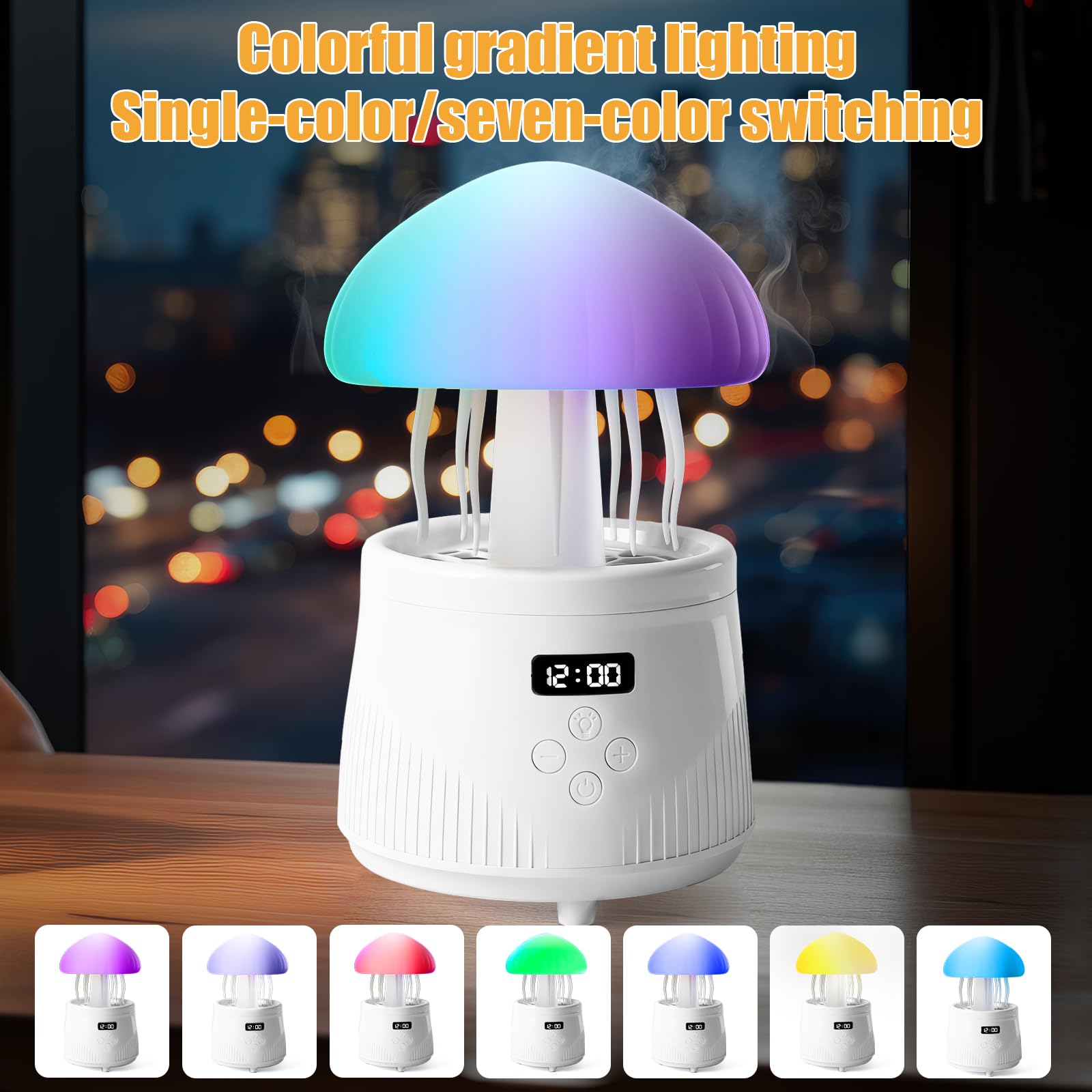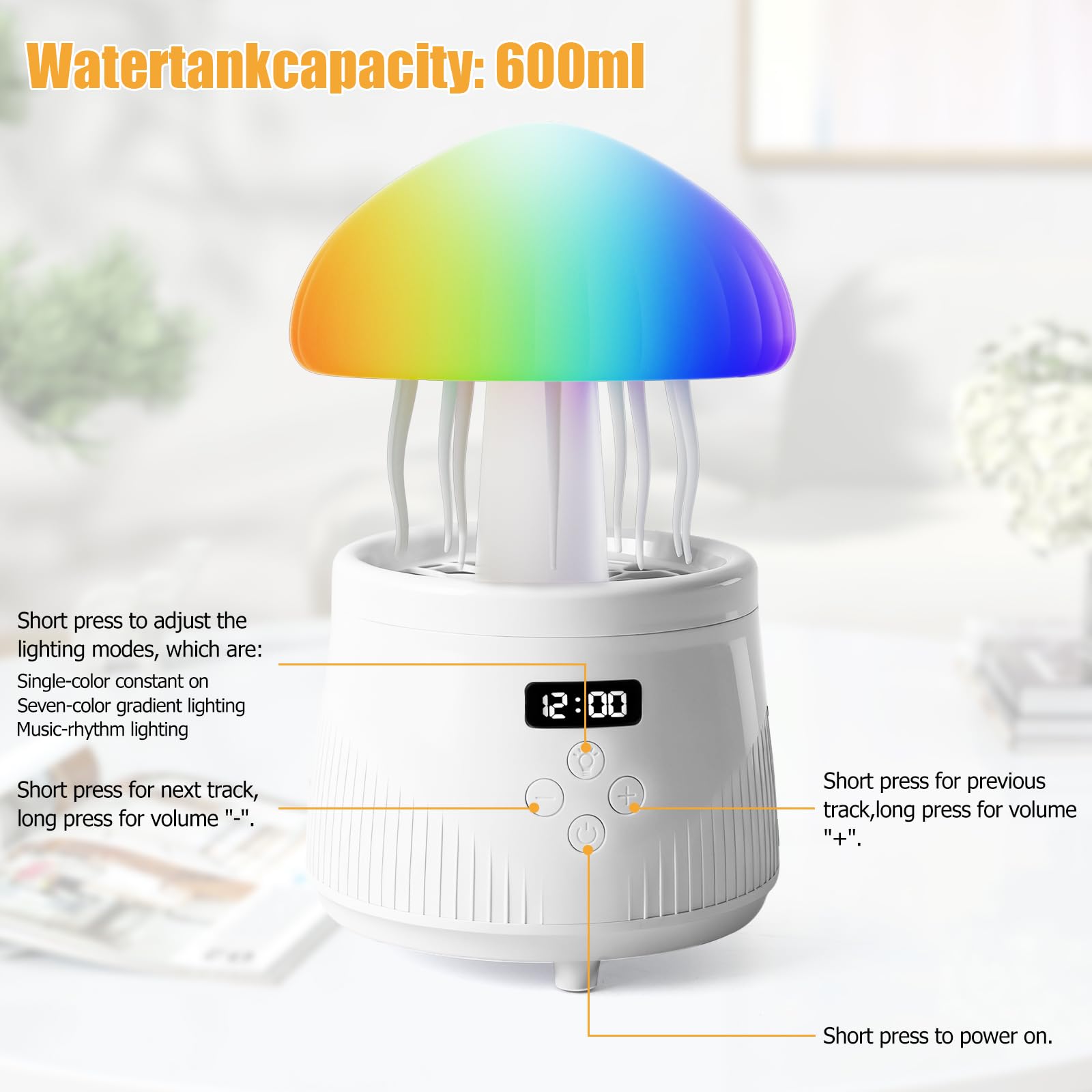 Meduusi-kujuline õhuniisutaja-difuuser Bluetooth kõlariga, valge (600ml)