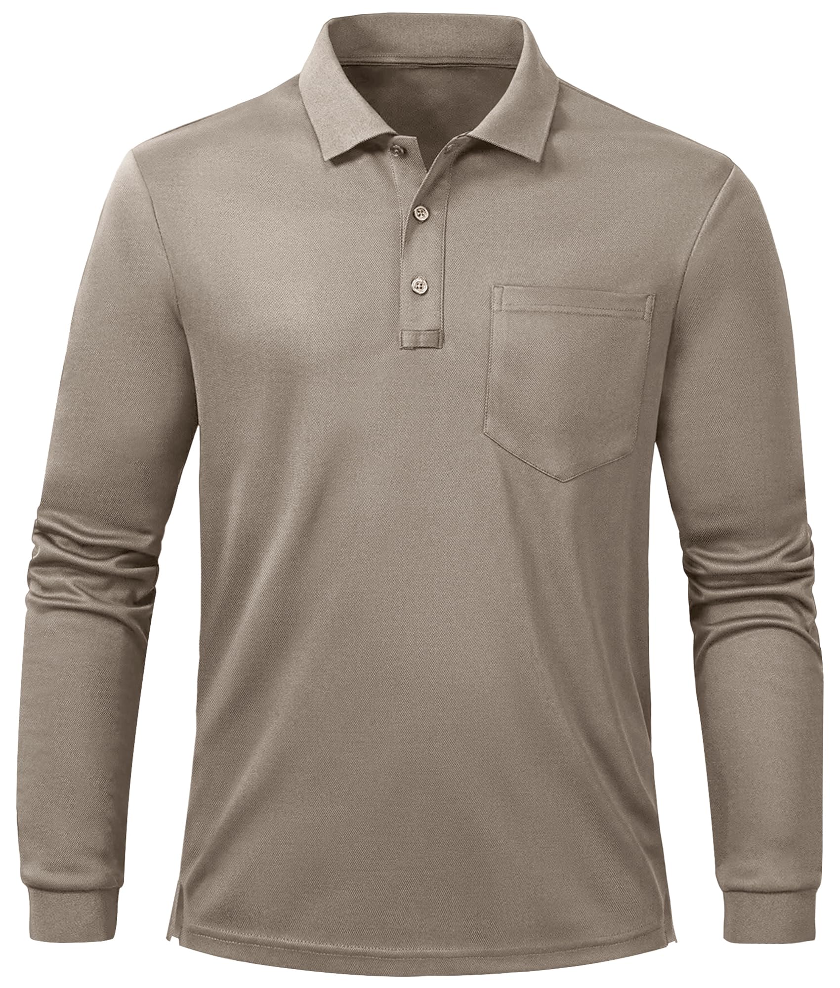 Meeste pikkade varrukatega polosärk, khaki (XL)