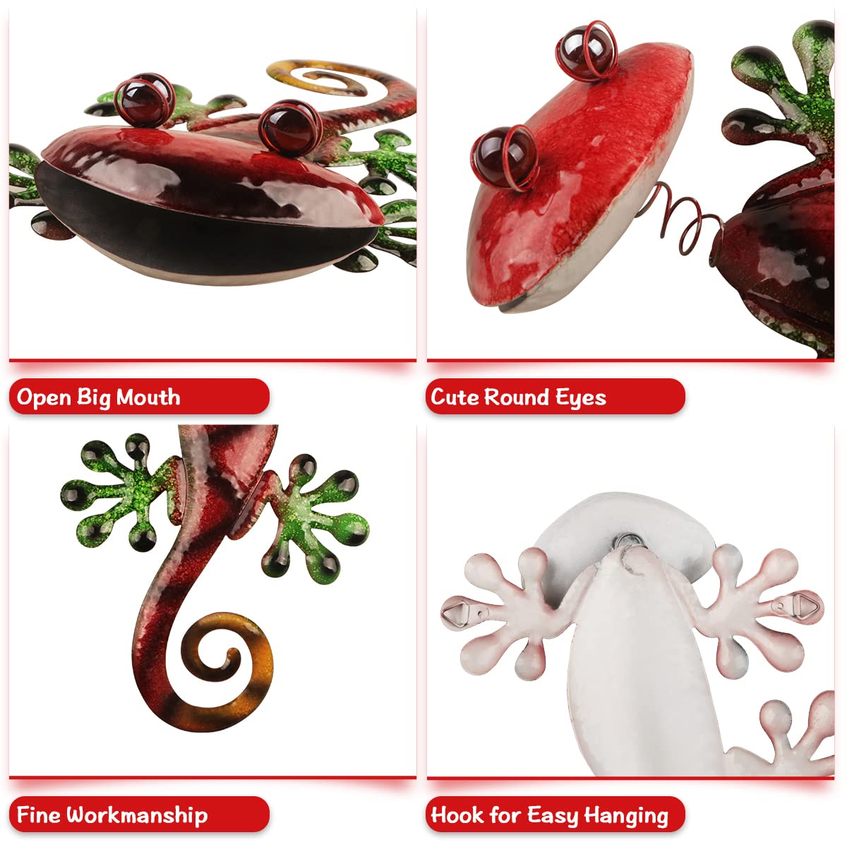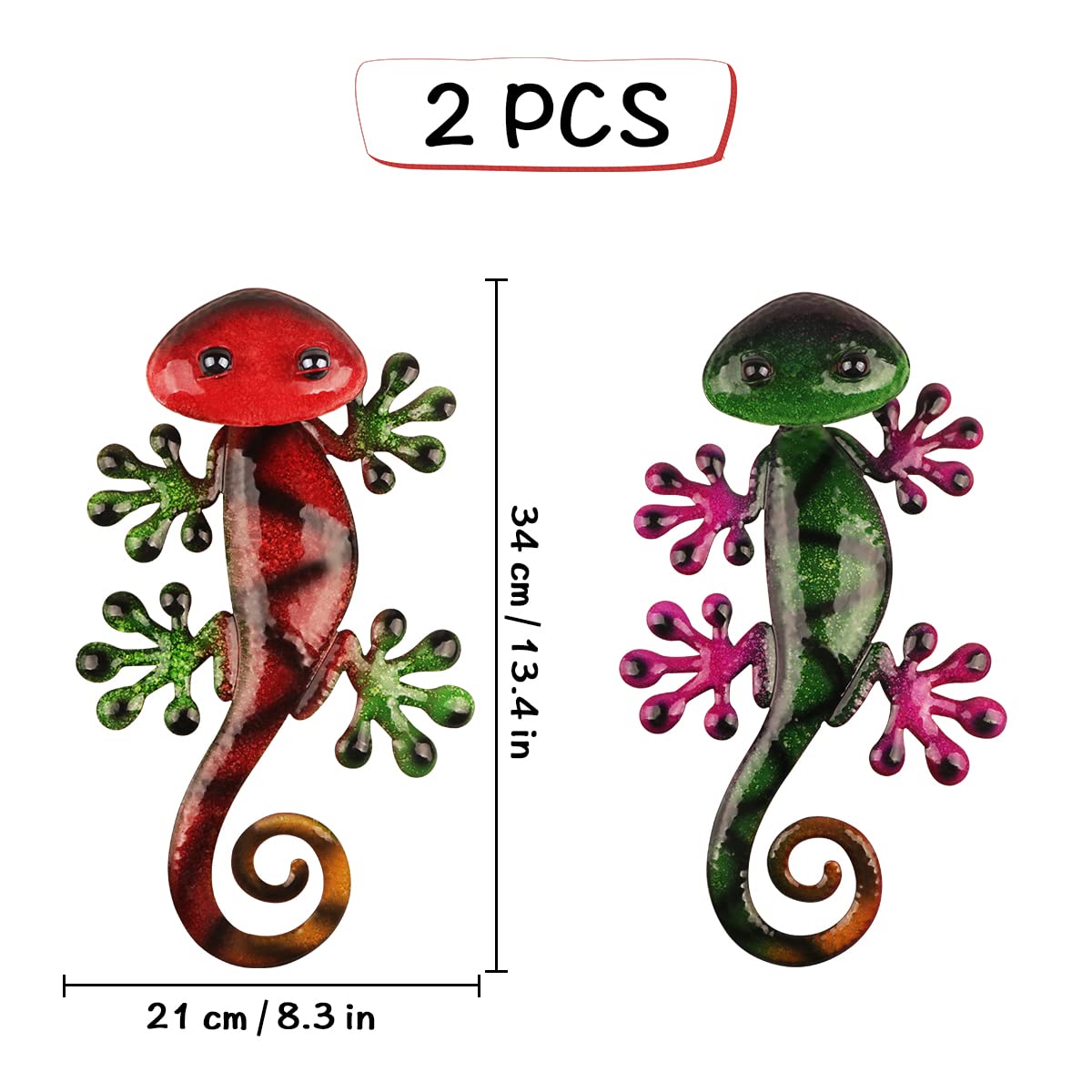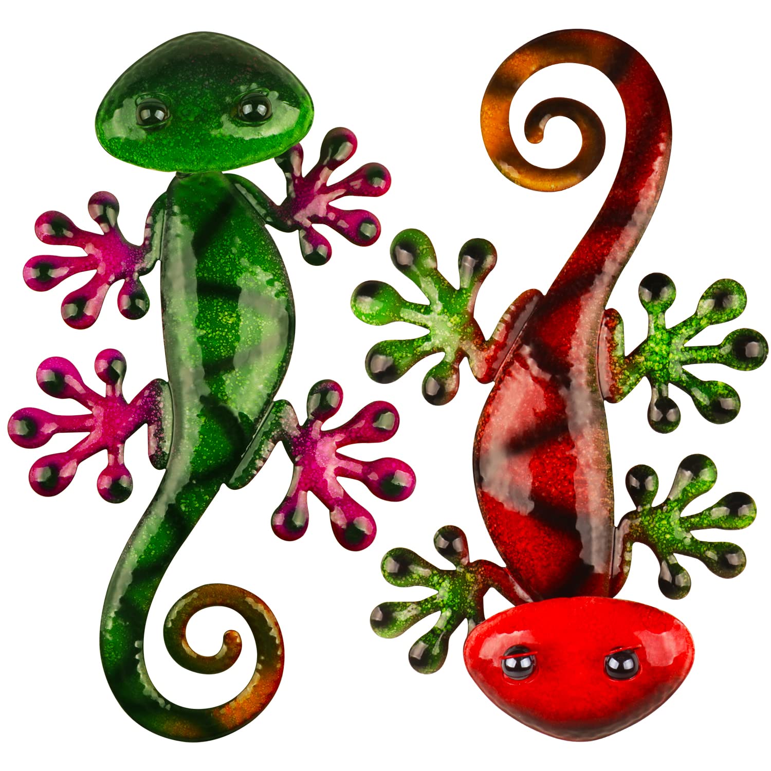 Metallist geko seinakaunistus, punane ja roheline (2tk)