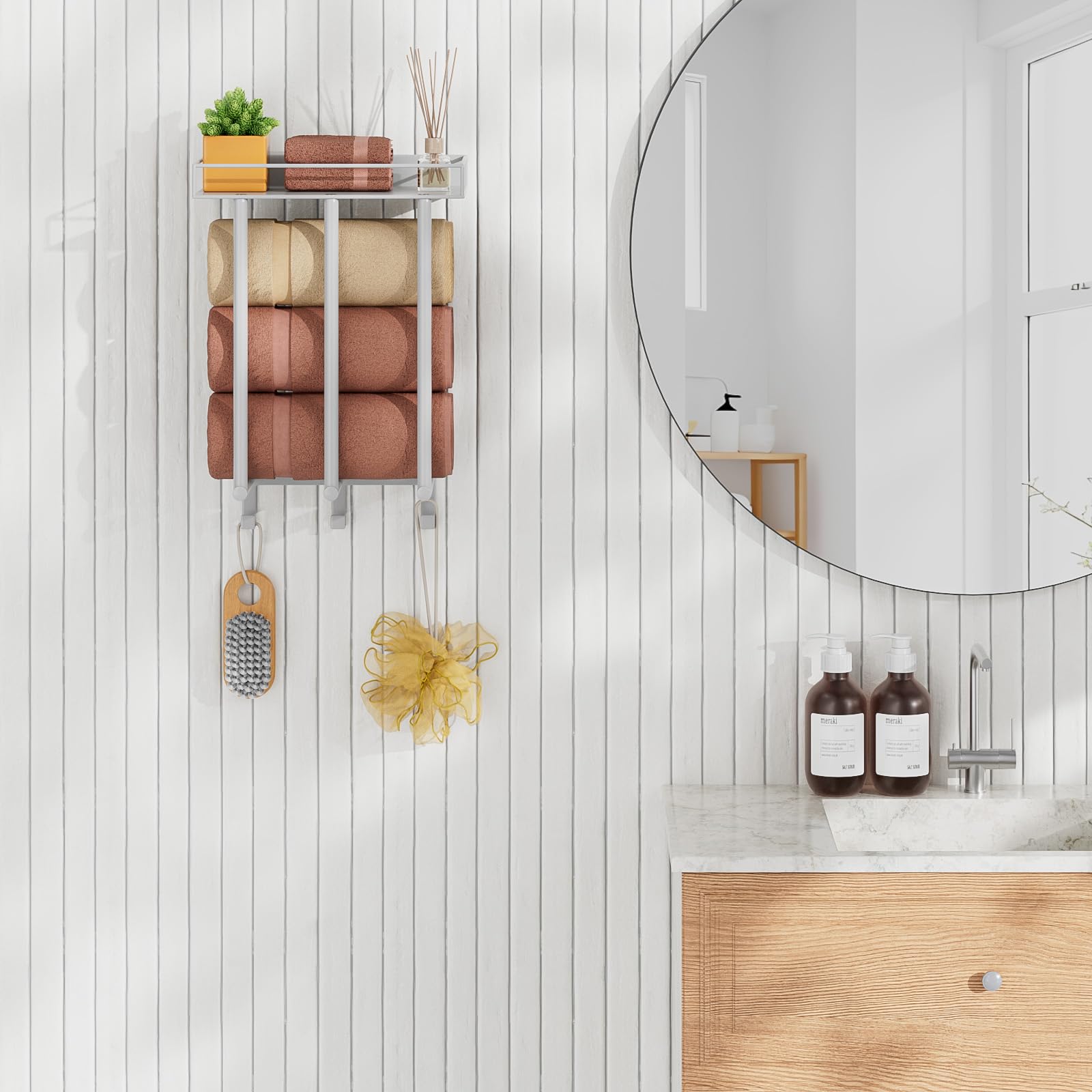 Metallist vannitoa rätikuhoidja riiuliga, valge