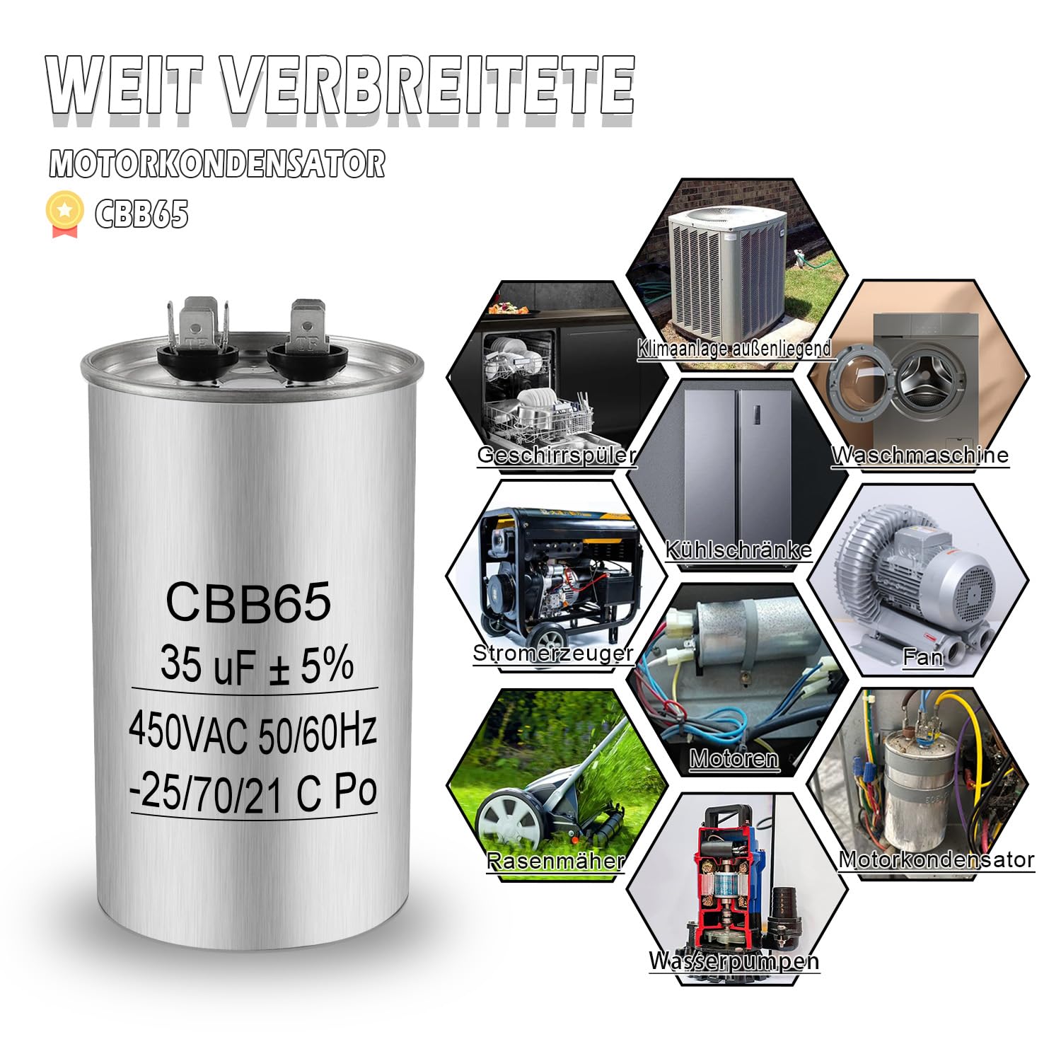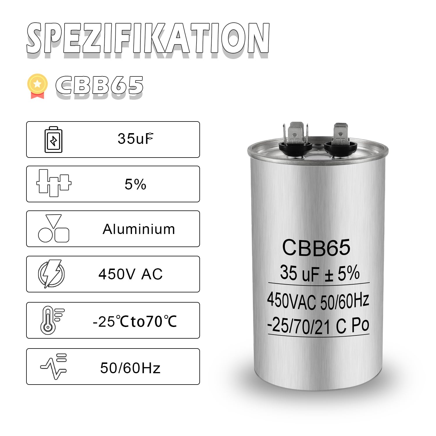 Mootori käivituskondensaator, must (35µF)