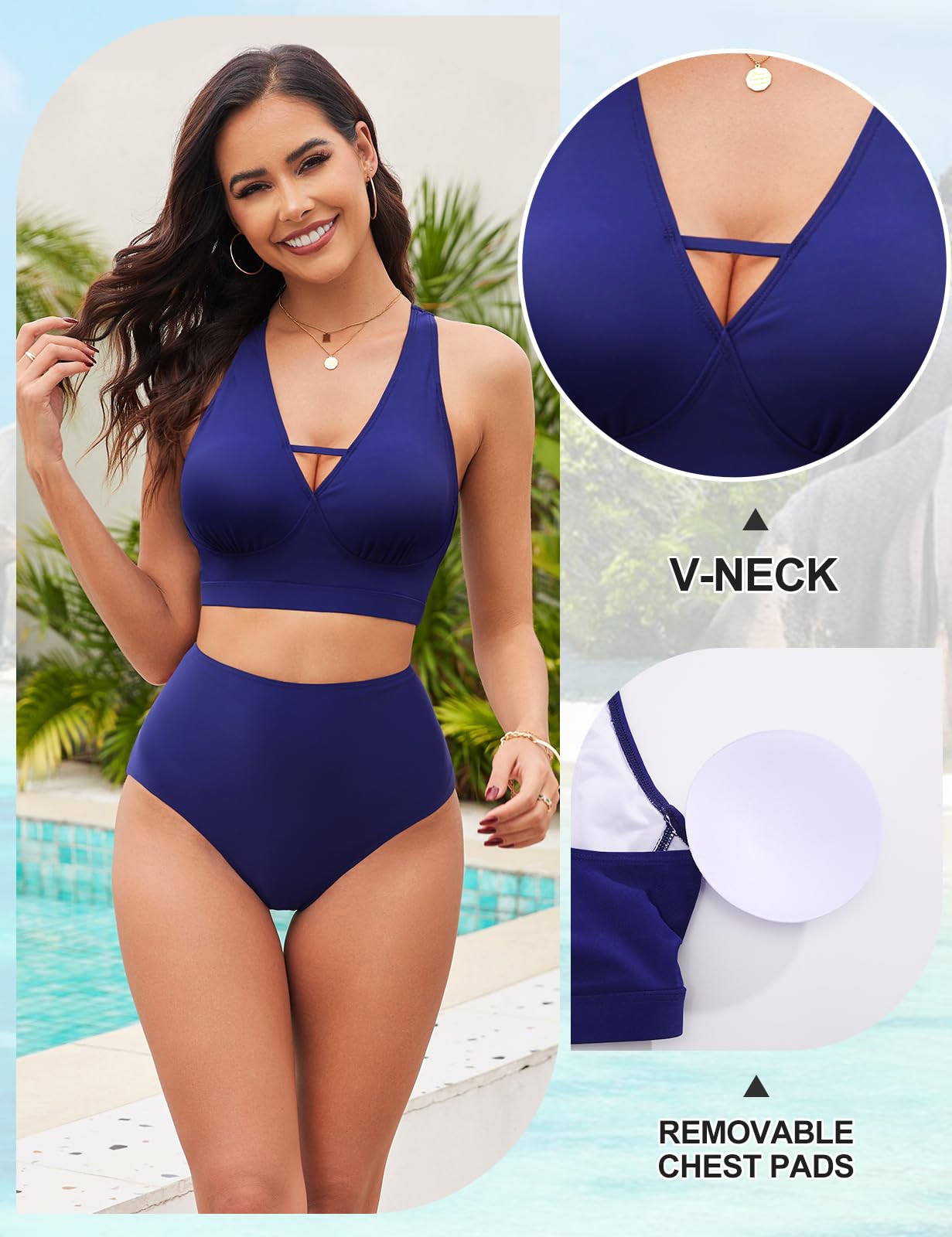 Naiste bikiinikomplekt, kõrge vöökohaga, kõhtu salendav, tumesinine (s. S)
