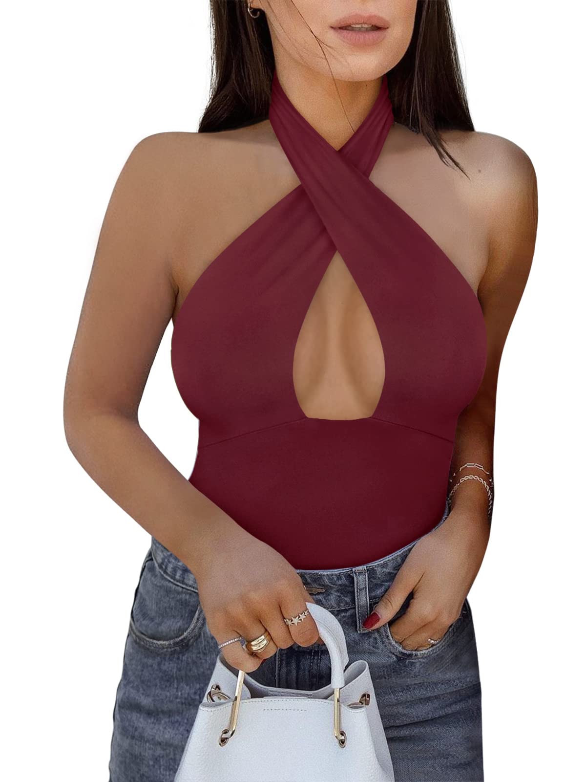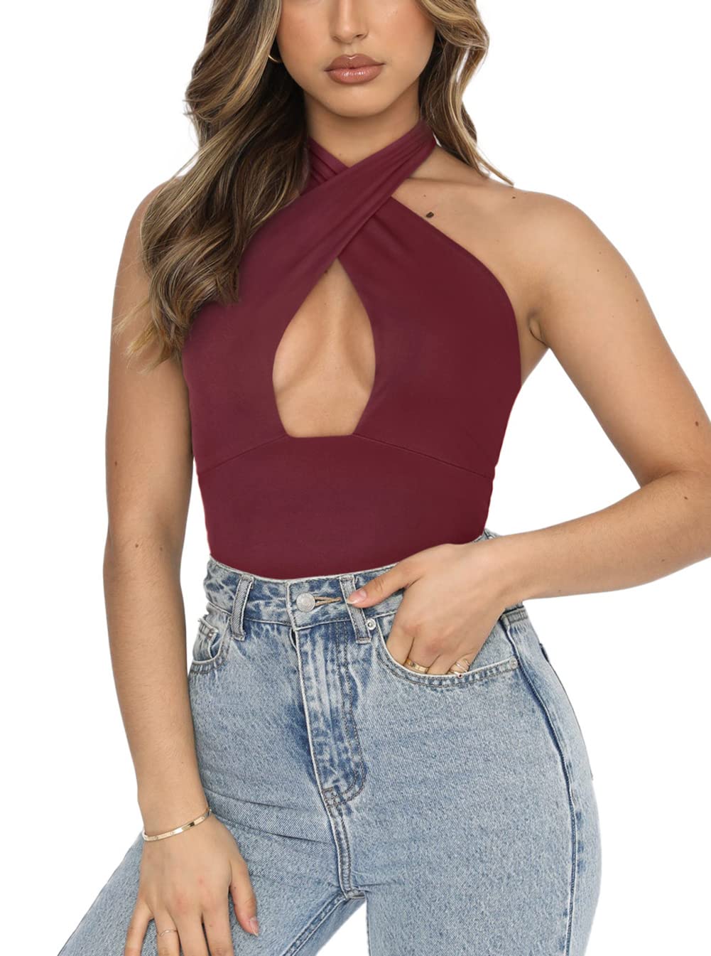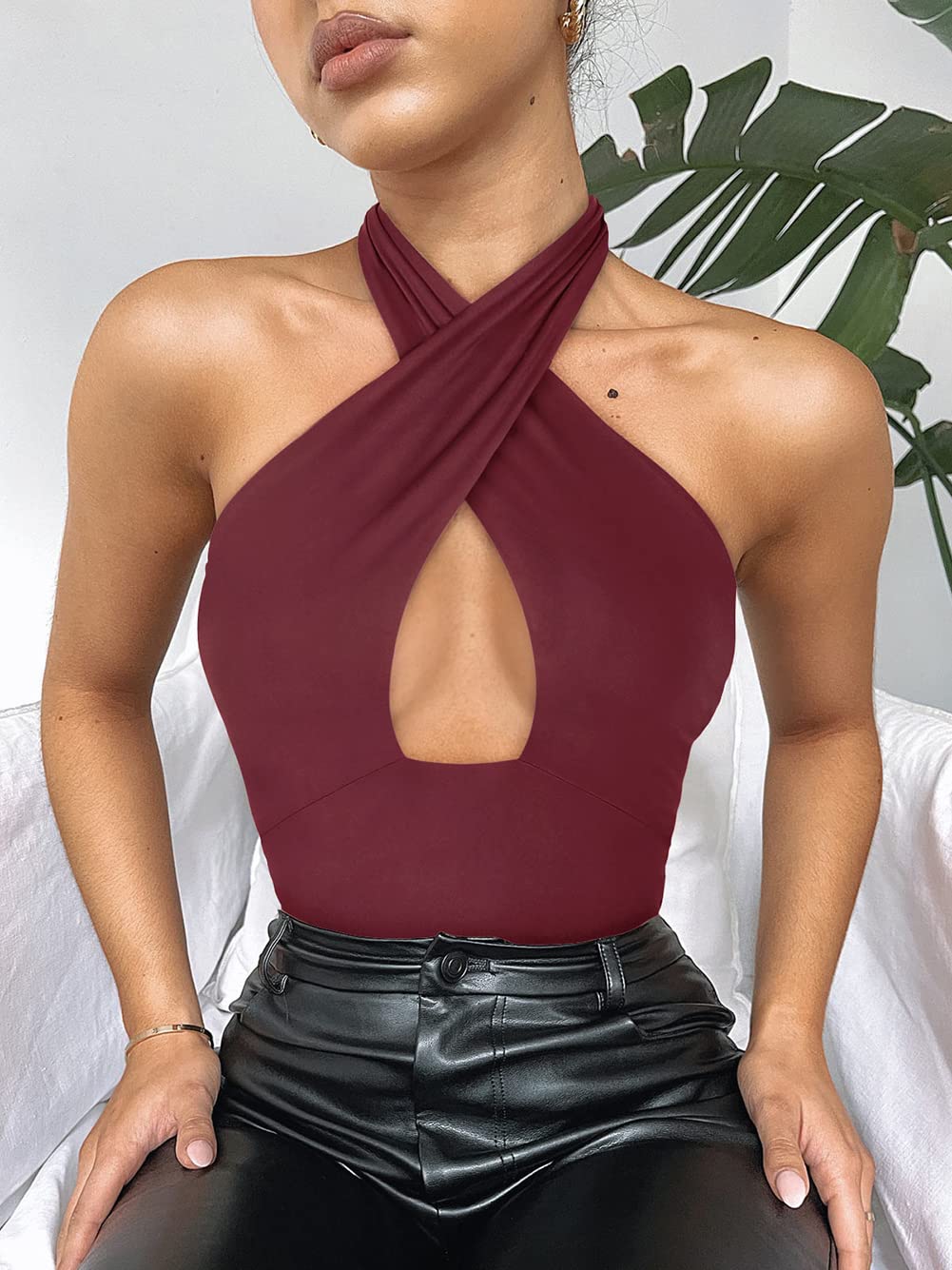 Naiste halter-kaelusega bodi, bordoopunane (XXL)