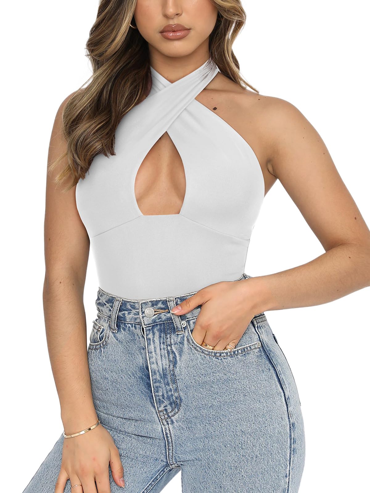 Naiste halter-kaelusega bodi, valge (XL)