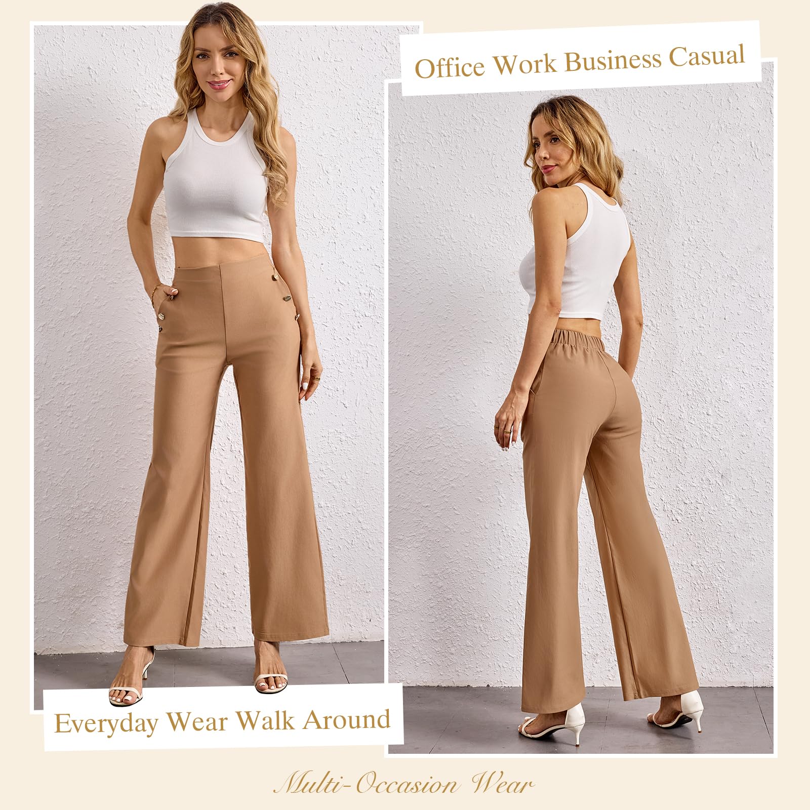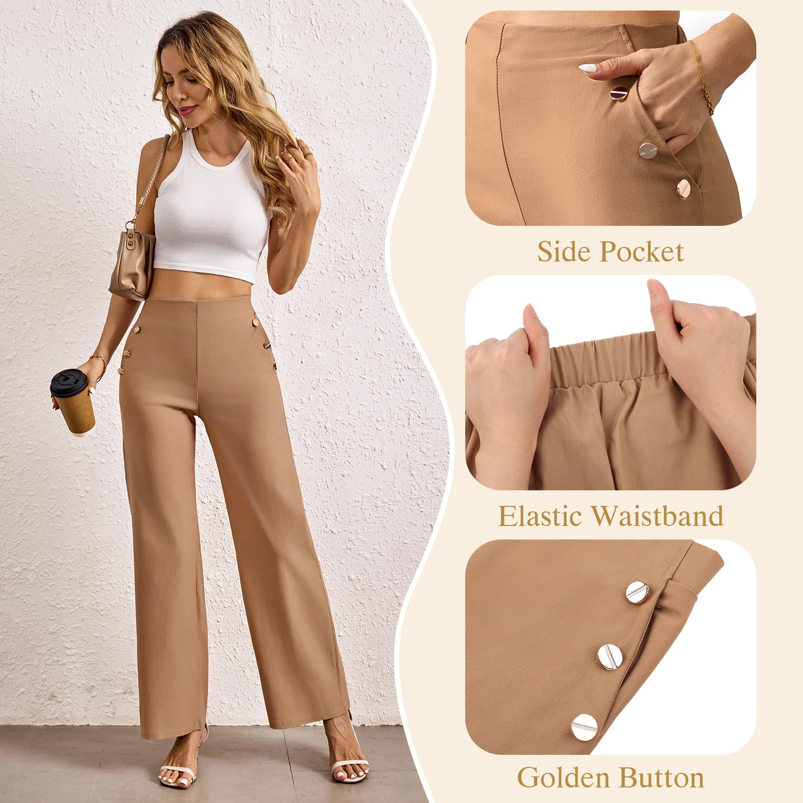 Naiste kõrge vöökohaga laiad püksid, kaamelikarva (s. S) kogus