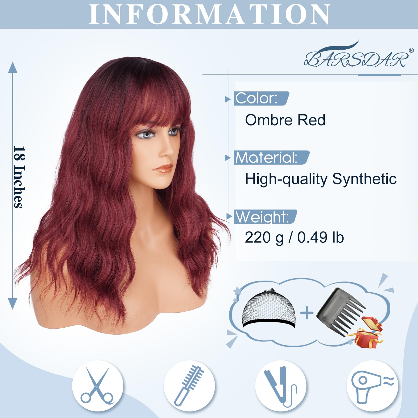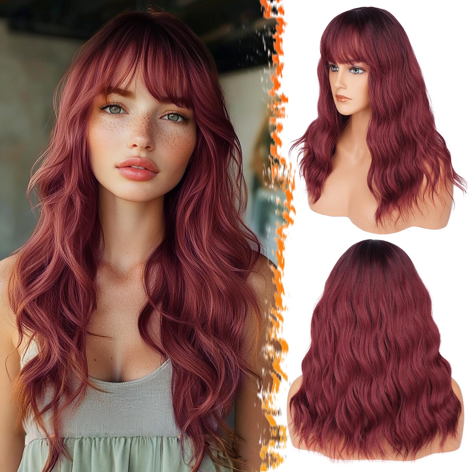 Naiste kuumakindel parukas, ombre punane, lokkis-laineline, tukaga (46cm)