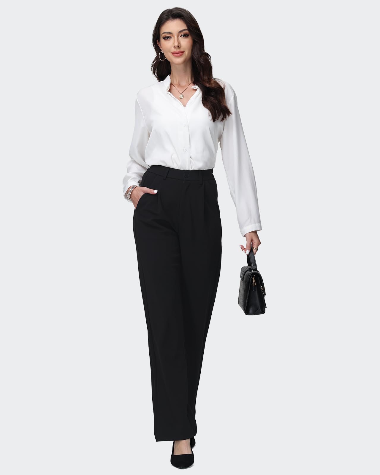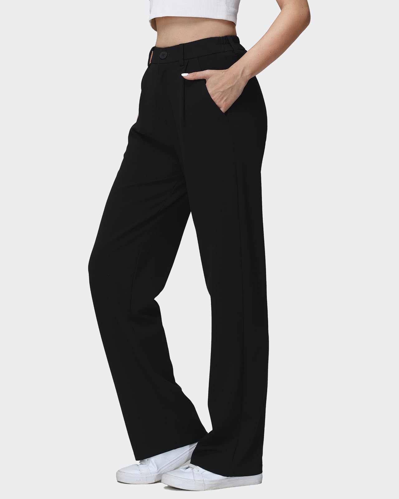 Naiste laiade säärtega püksid, sirge lõikega, mustad (s. L)