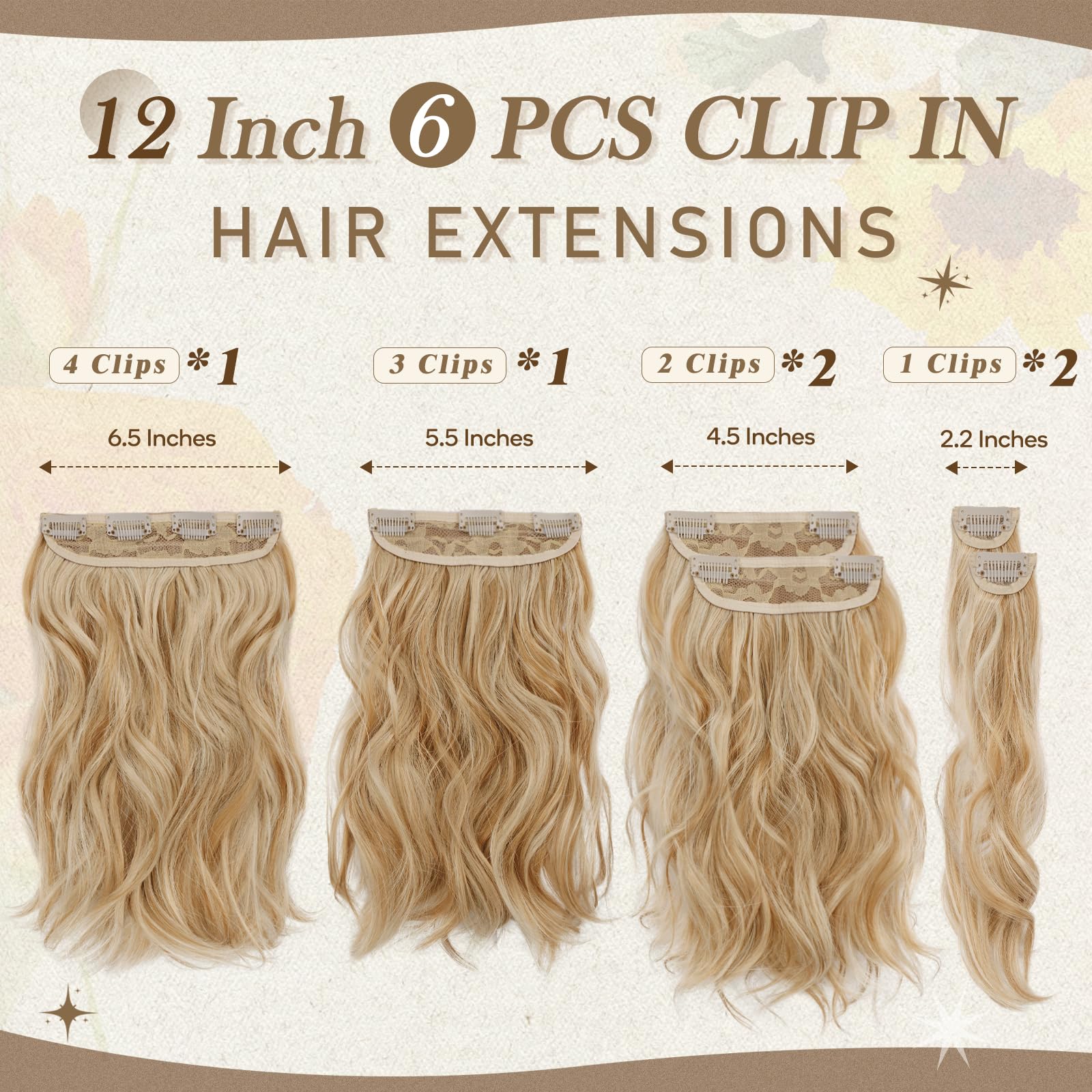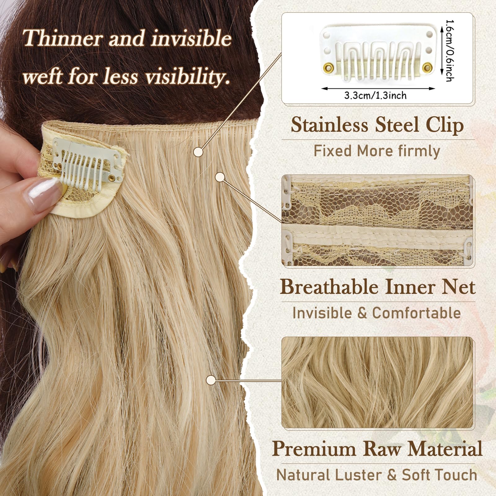Naiste lainelised juuksepikendused, klambritega, mesi-blond (30cm)