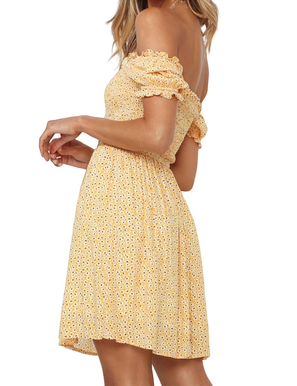 Naiste lilleline tuunikkleit, paljaste õlgadega, kollane (s. L)