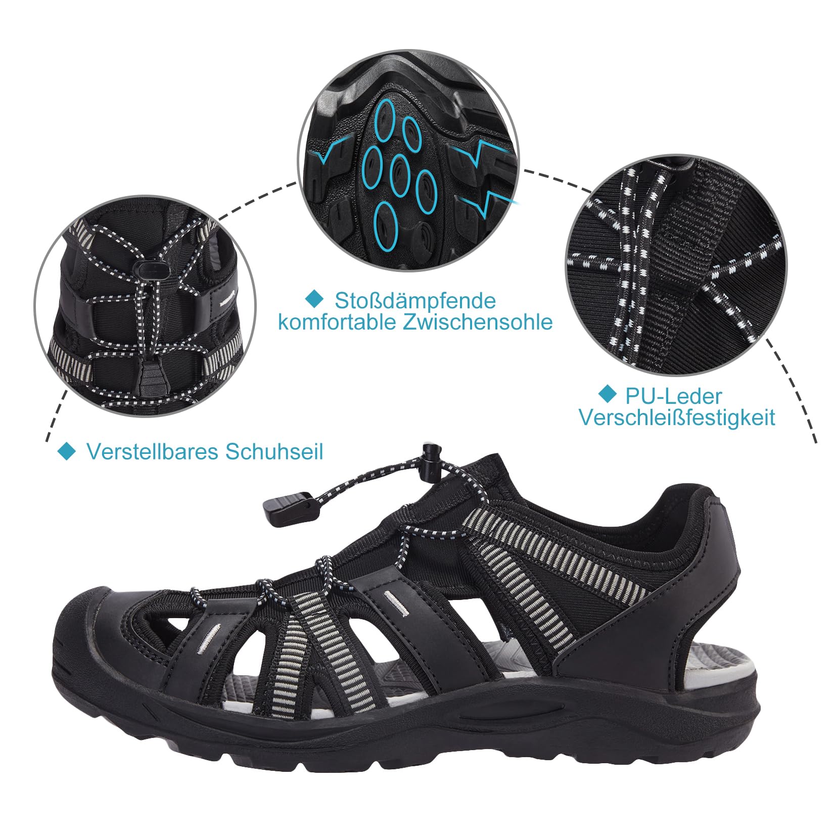 Naiste mugavad kerged matkasandaalid, kinnise ninaga, must/hall (s. 40)