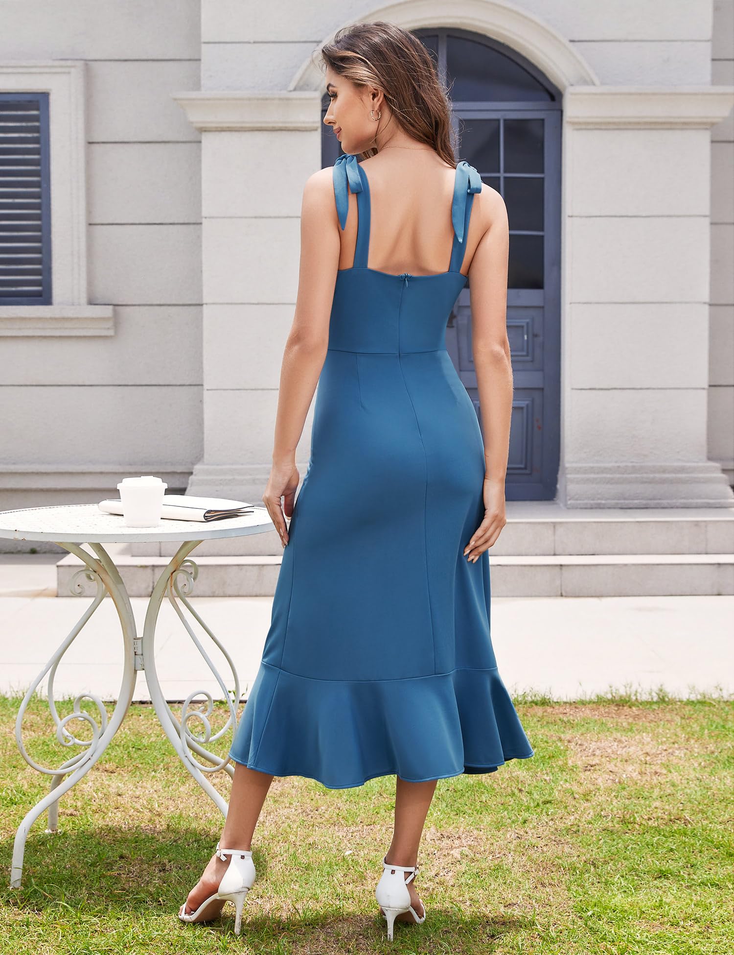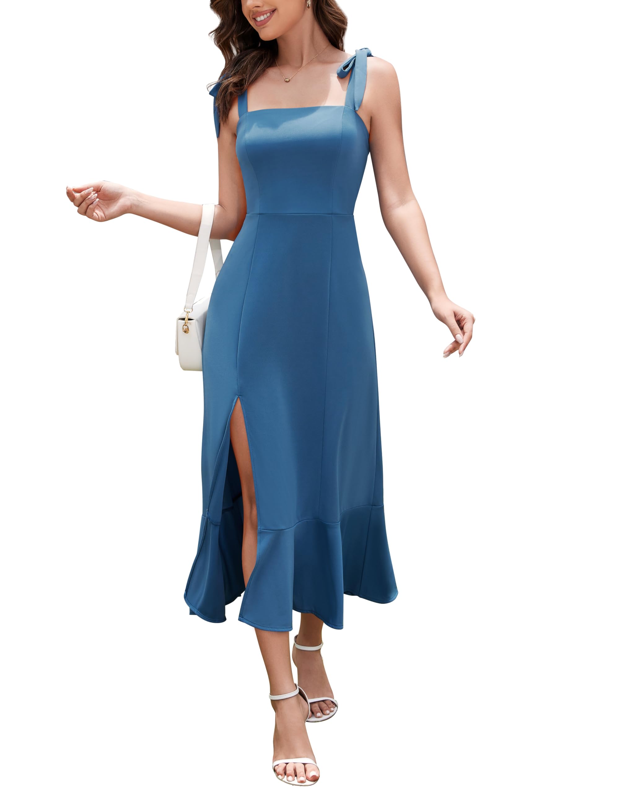 Naiste õhtukleit, õlapaeltega, sinine (s. S)