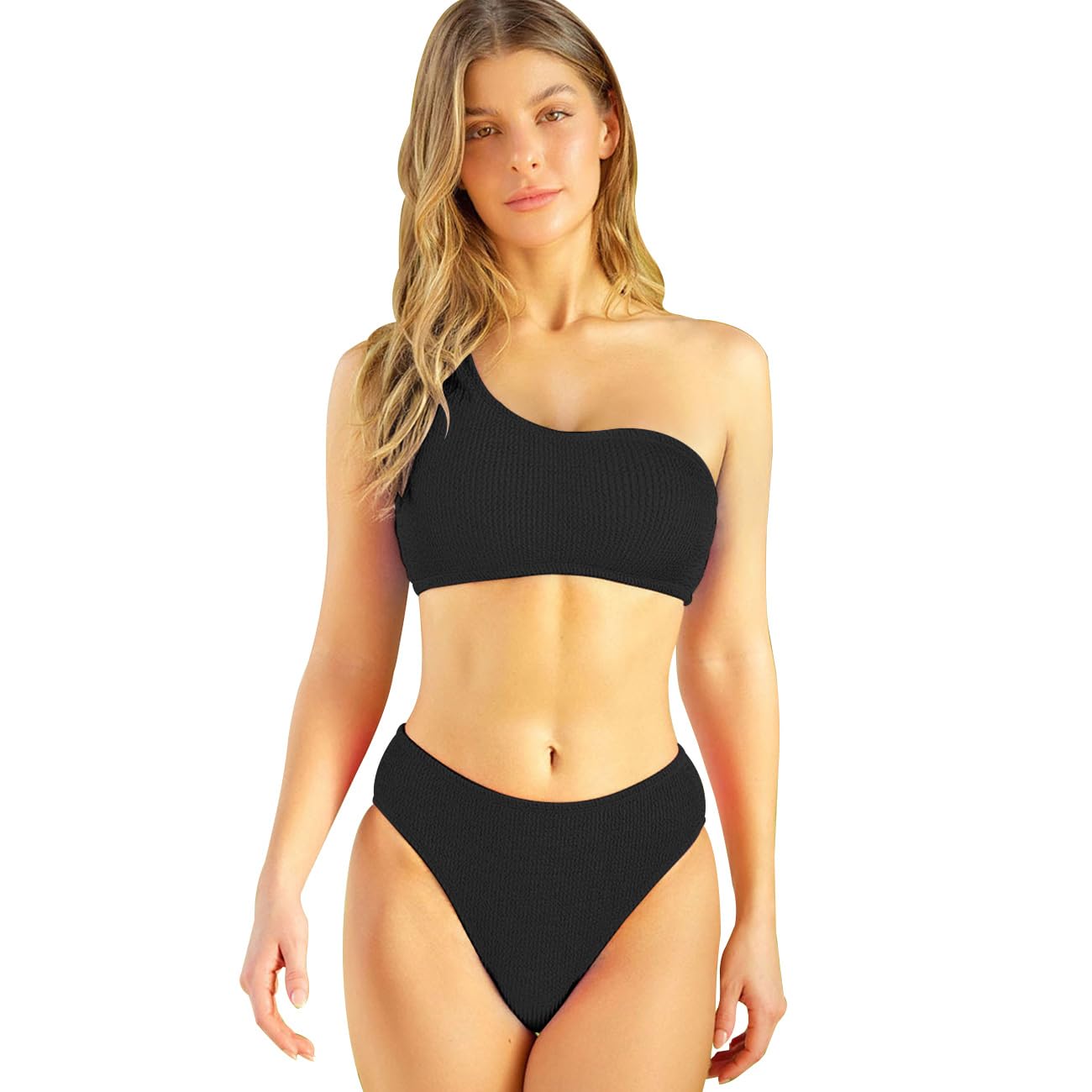 Naiste päevitusriided, ühe õlaga, push-up, must (s. S)