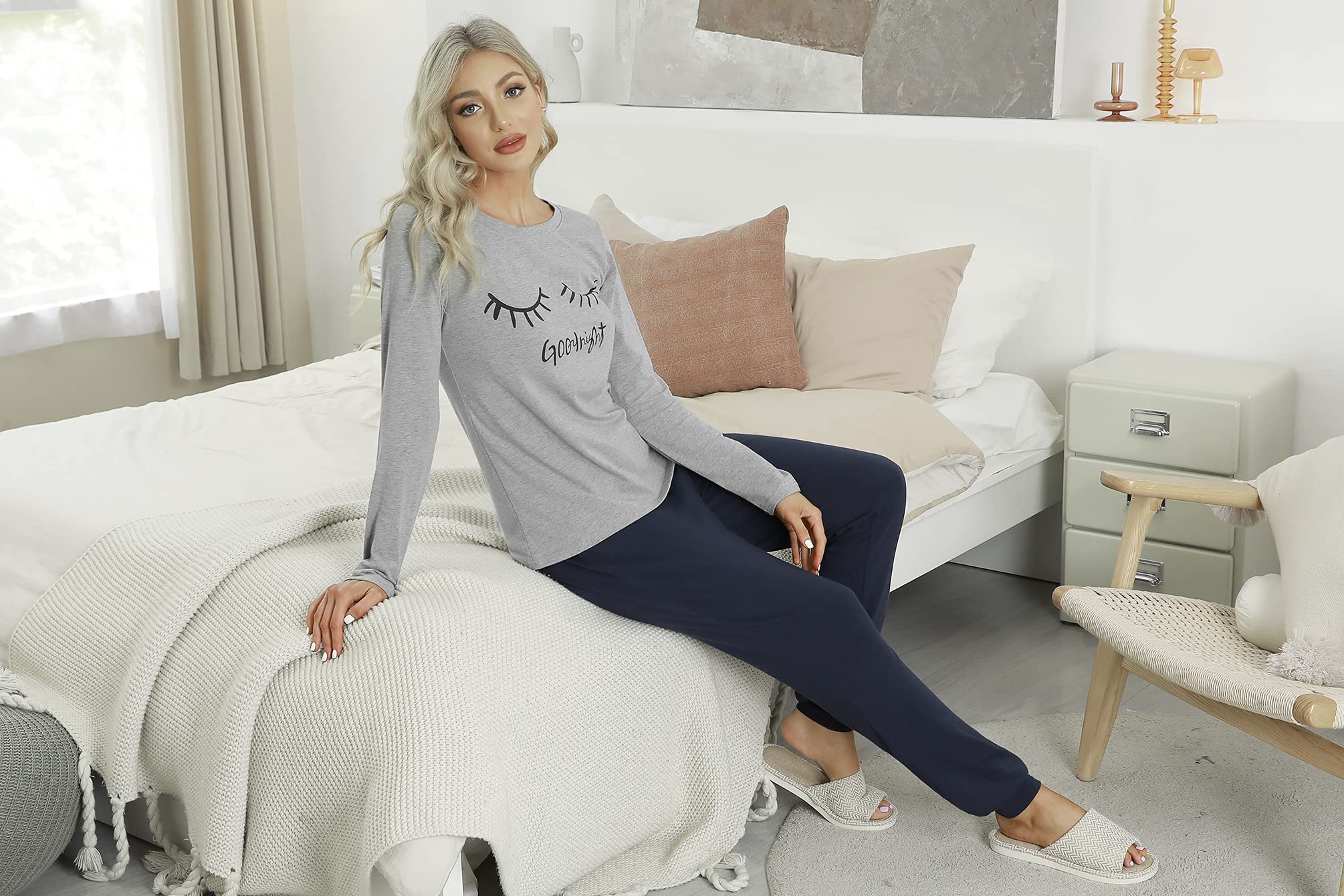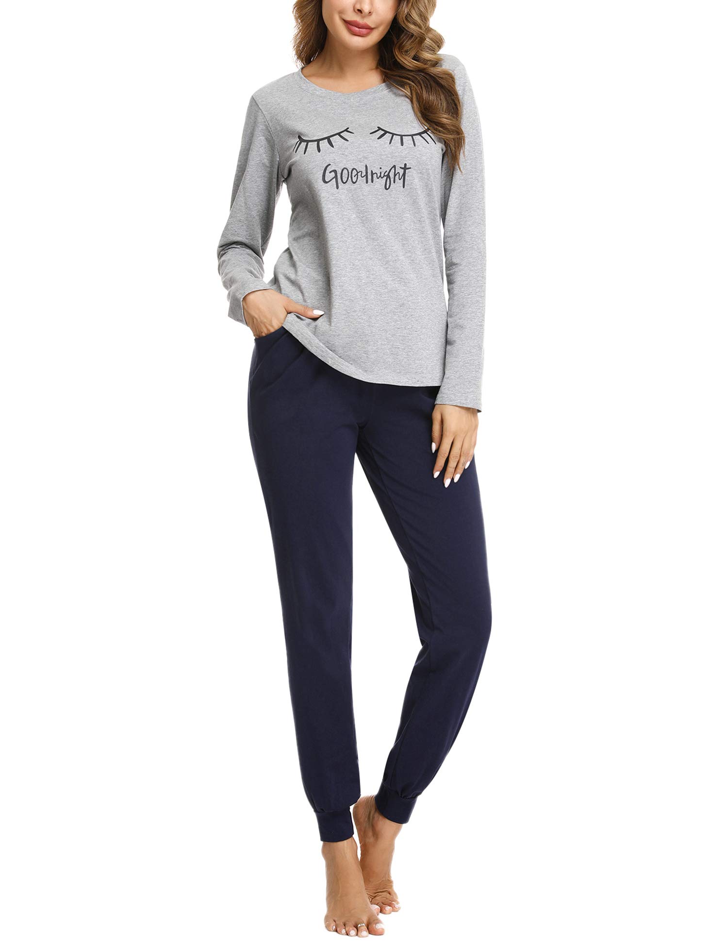 Naiste pikk puuvillane pidžaama, hall (2-osaline, s. L)