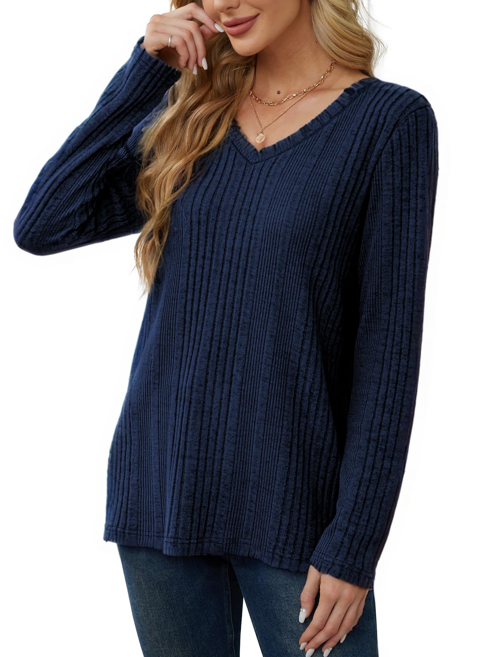 Naiste pikkade varrukatega pusa, V-kaelus suurus L