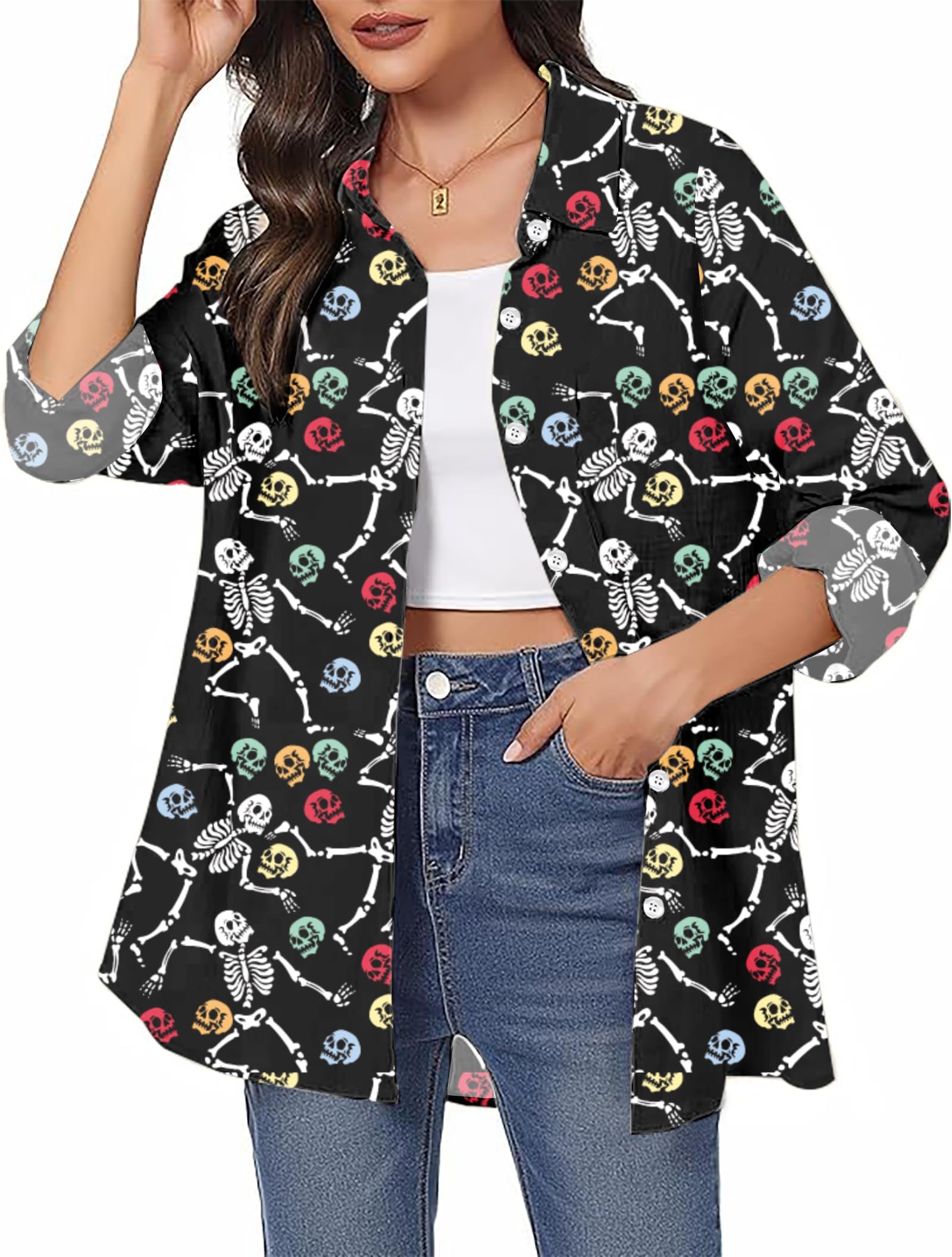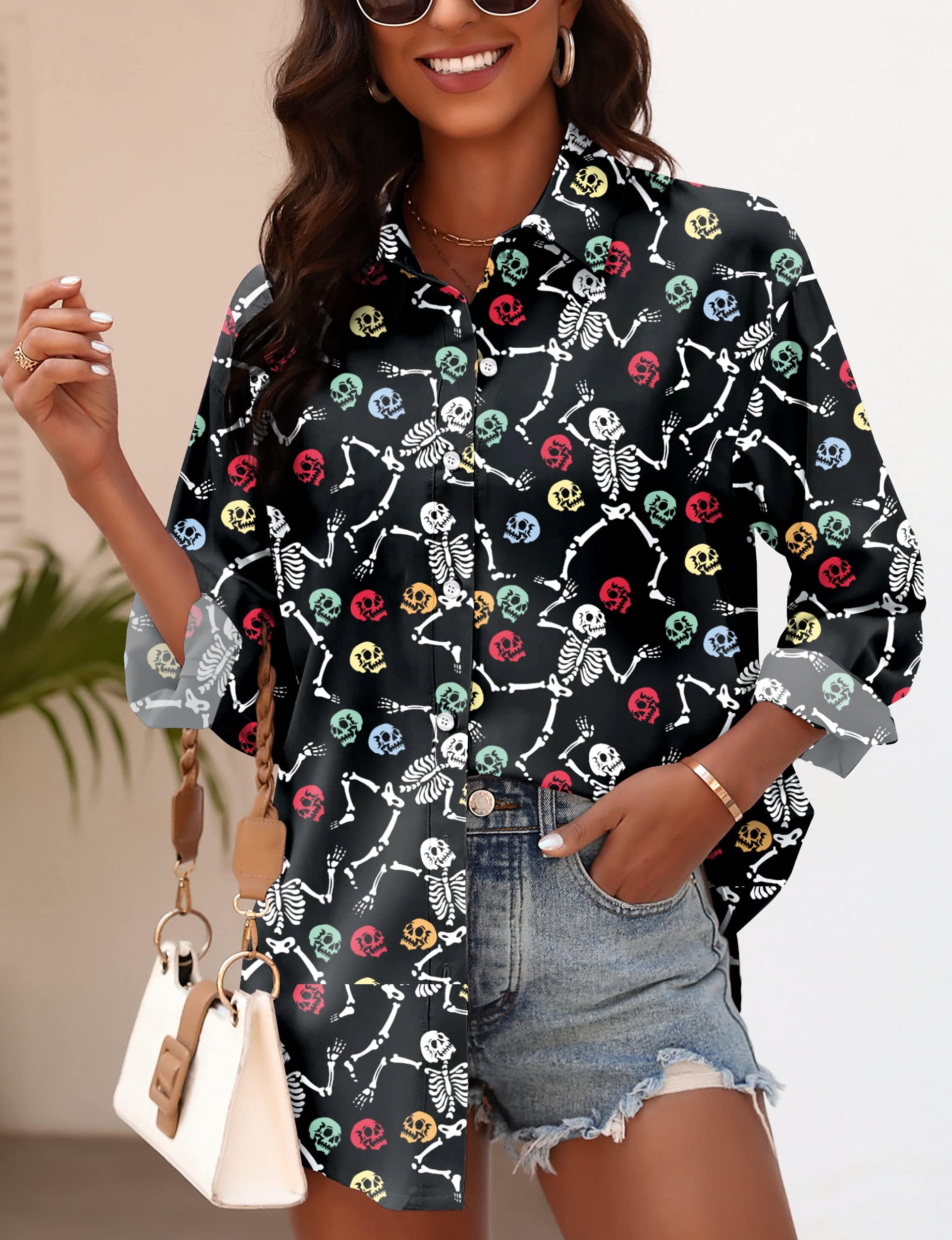 Naiste pikkade varrukatega särk, halloweeniteemaline, värviline (M)