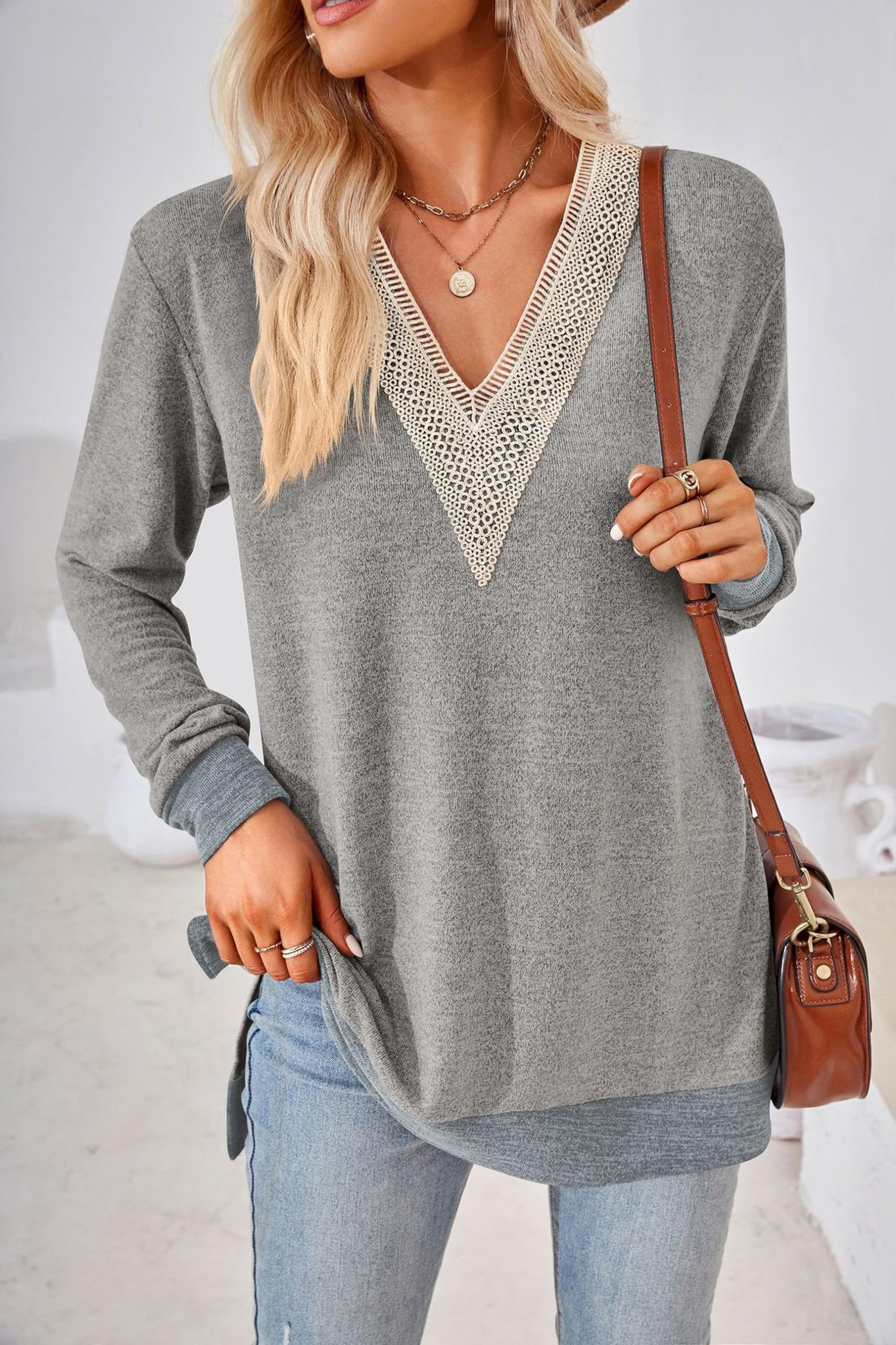 Naiste pikkade varrukatega tuunika, helehall (S)