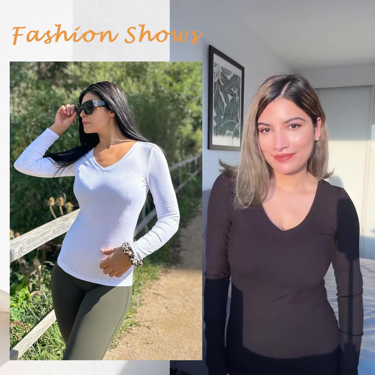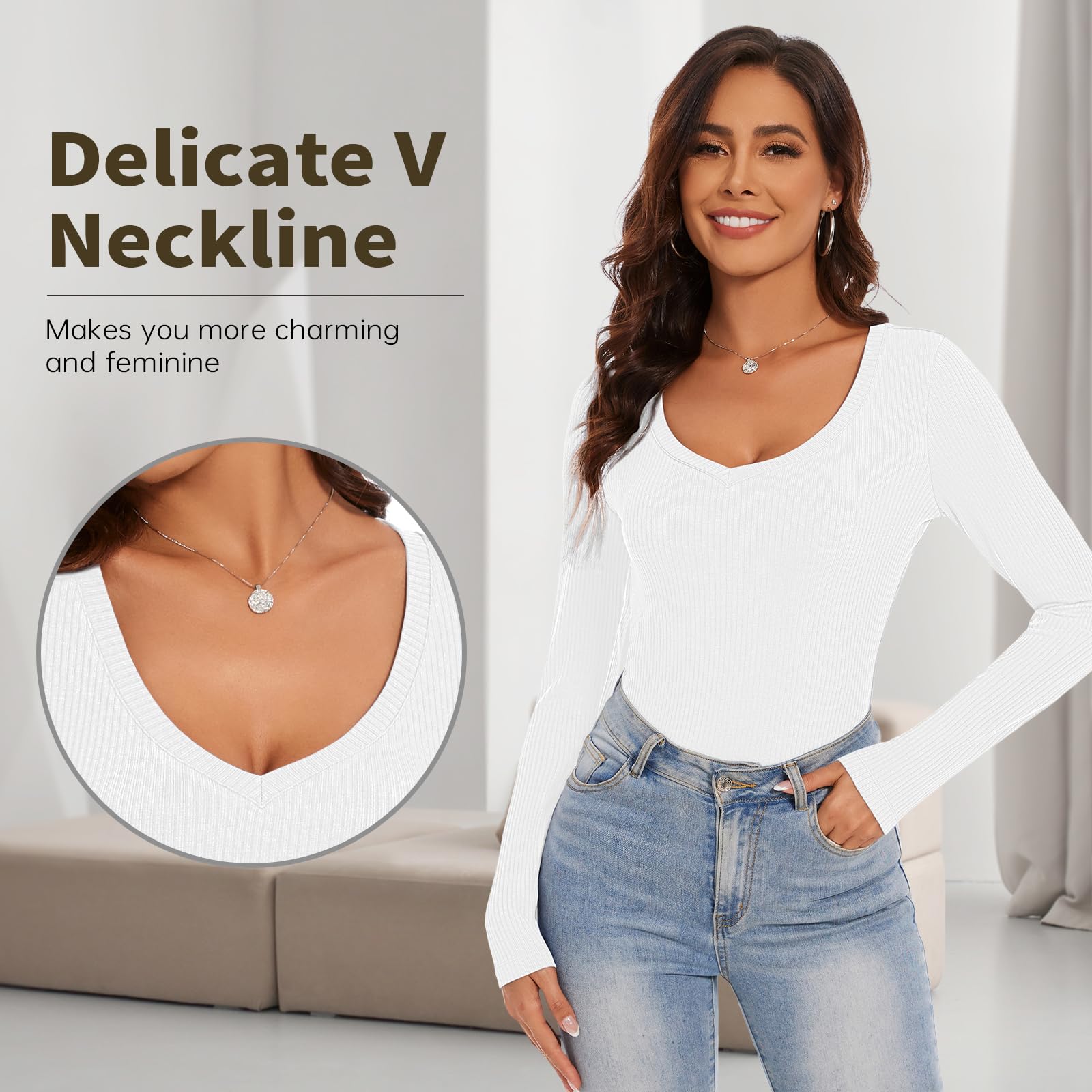 Naiste pikkade varrukatega V-kaelusega T-särk, valge (L)