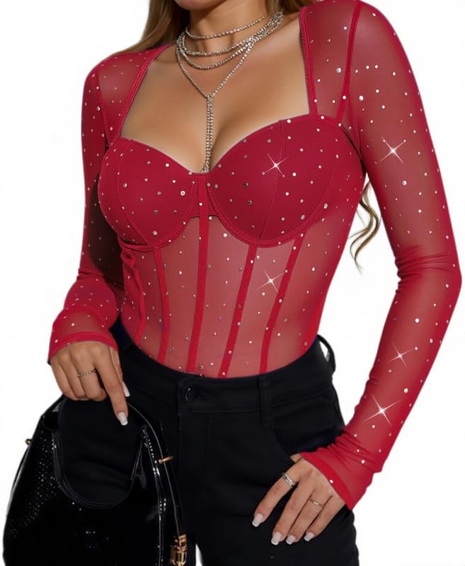 Naiste sädelev bodi, pikkade varrukatega, võrkmaterjalist, must (s. XXL)