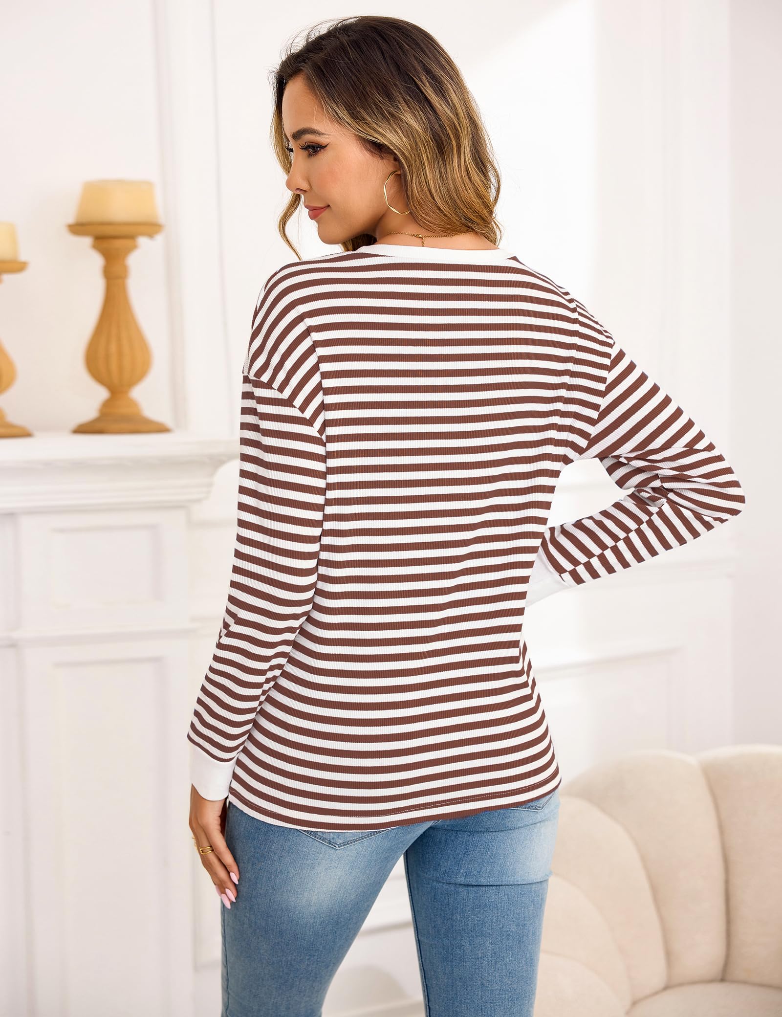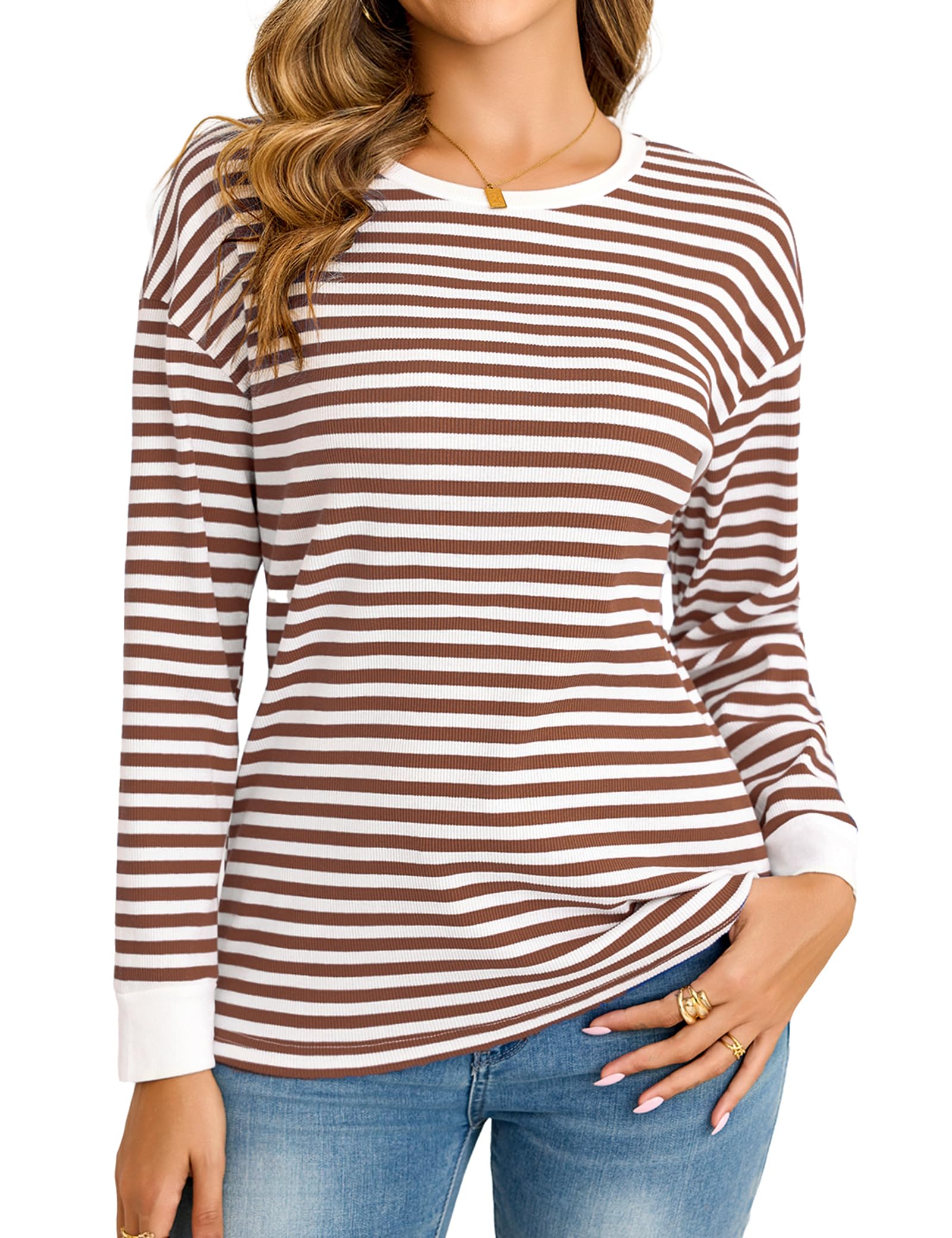 Naiste triibuline õhuke pusa, pruun (s. M)