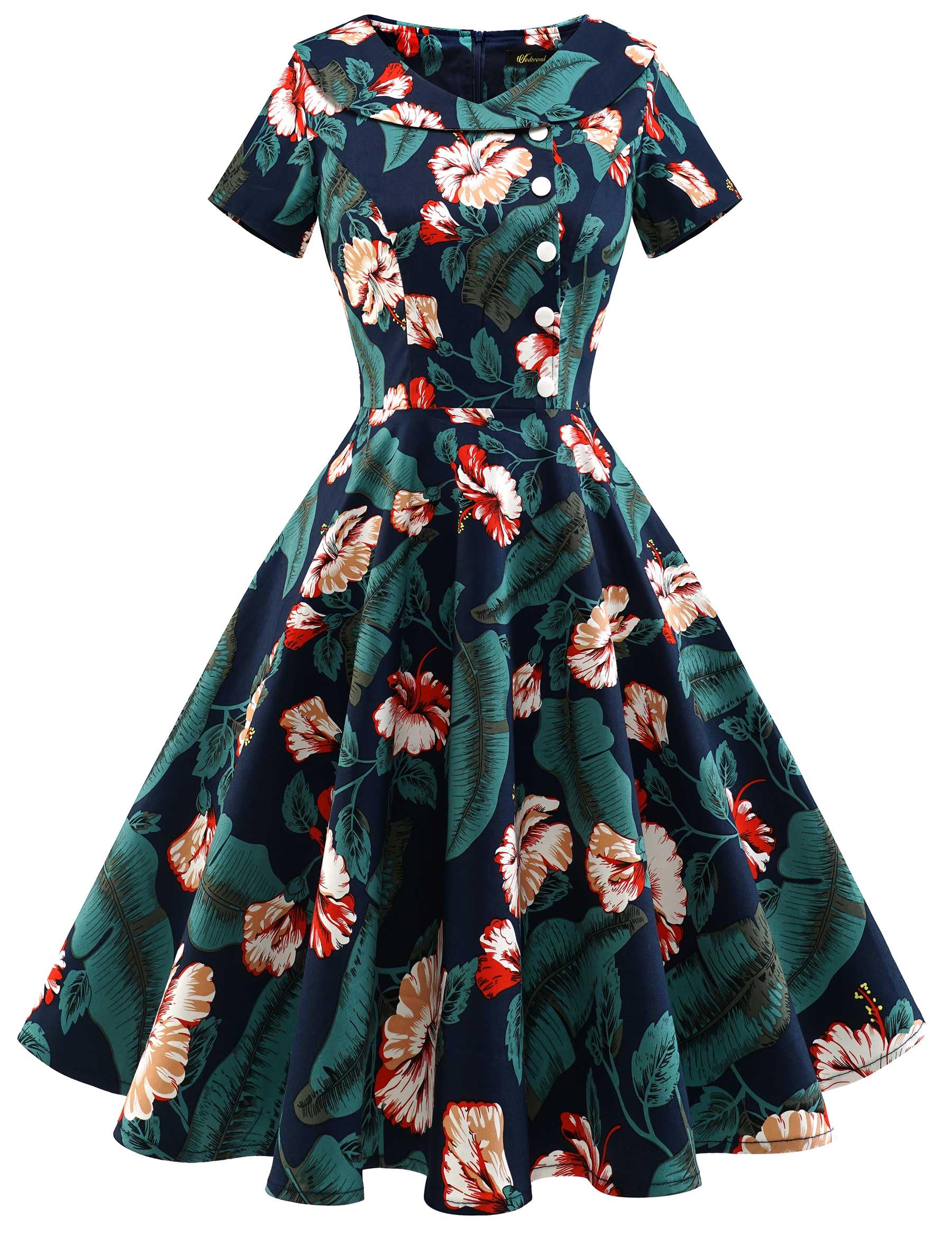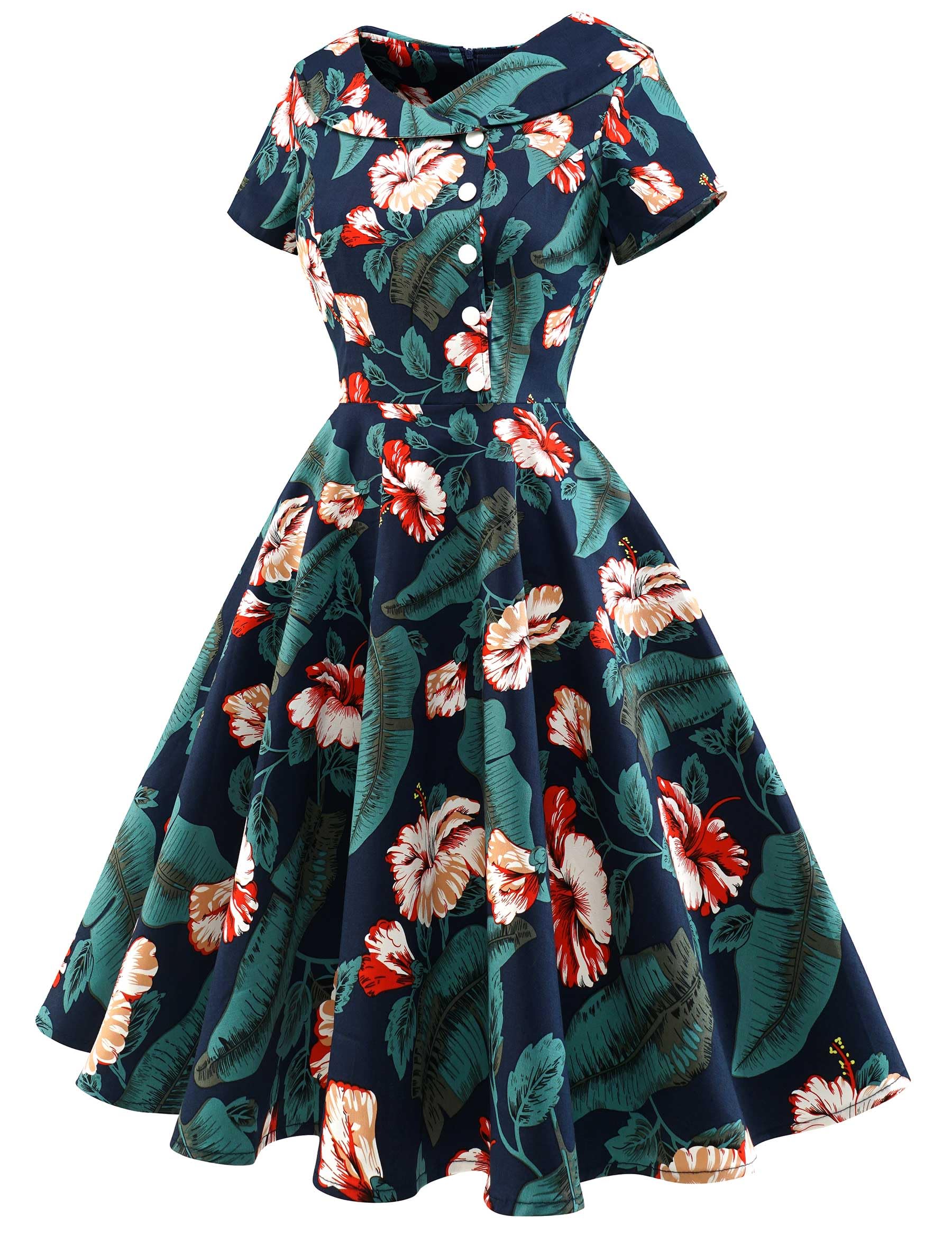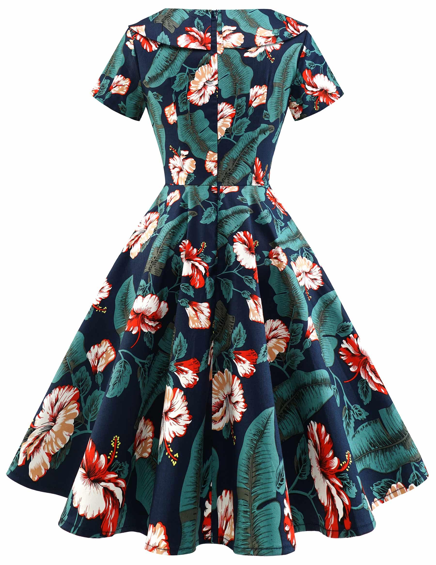 Naiste vintage kleit, tumesinine, lilleline (s. XS)