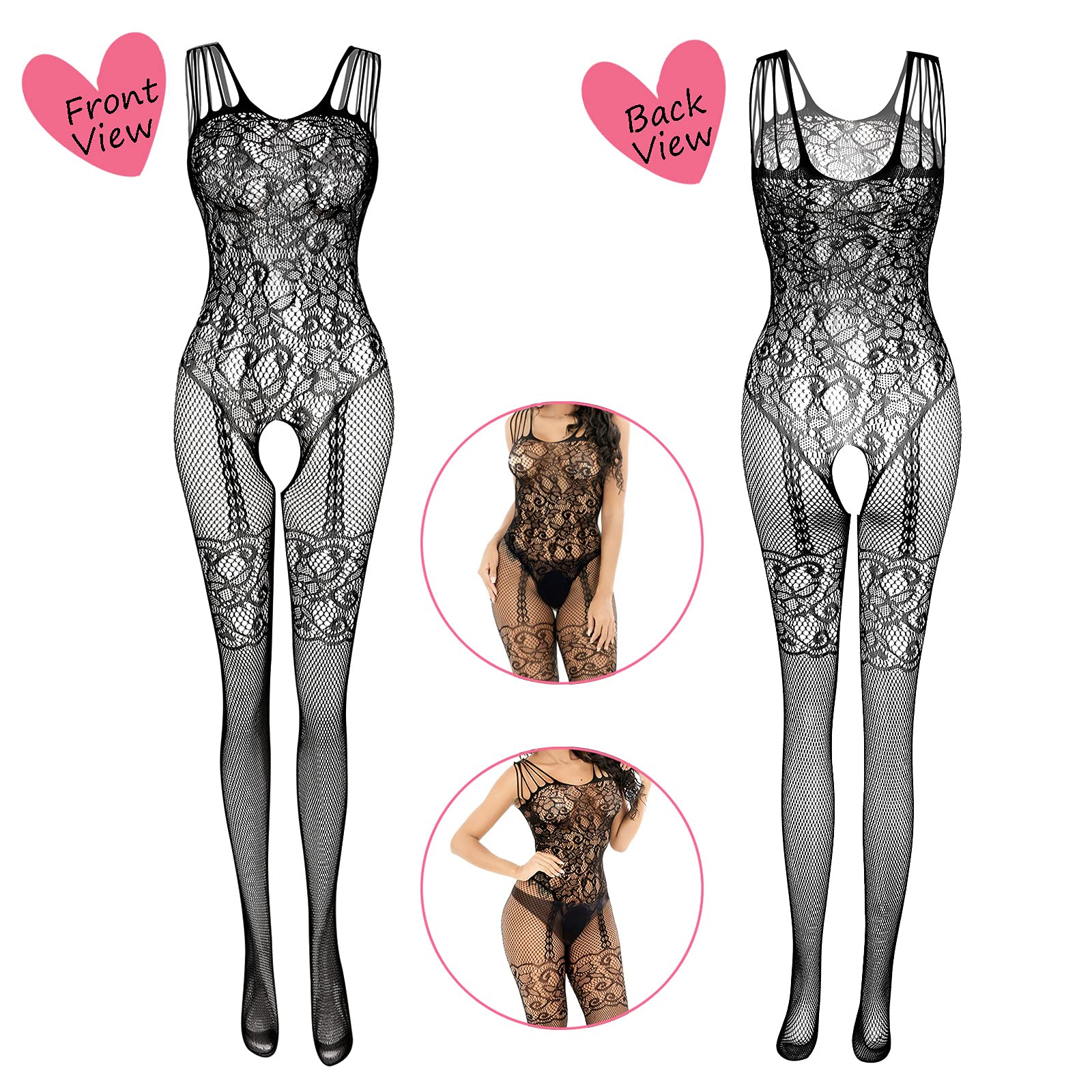 Naiste võrkkangast pesu pitsist sukkadega, must (4tk)