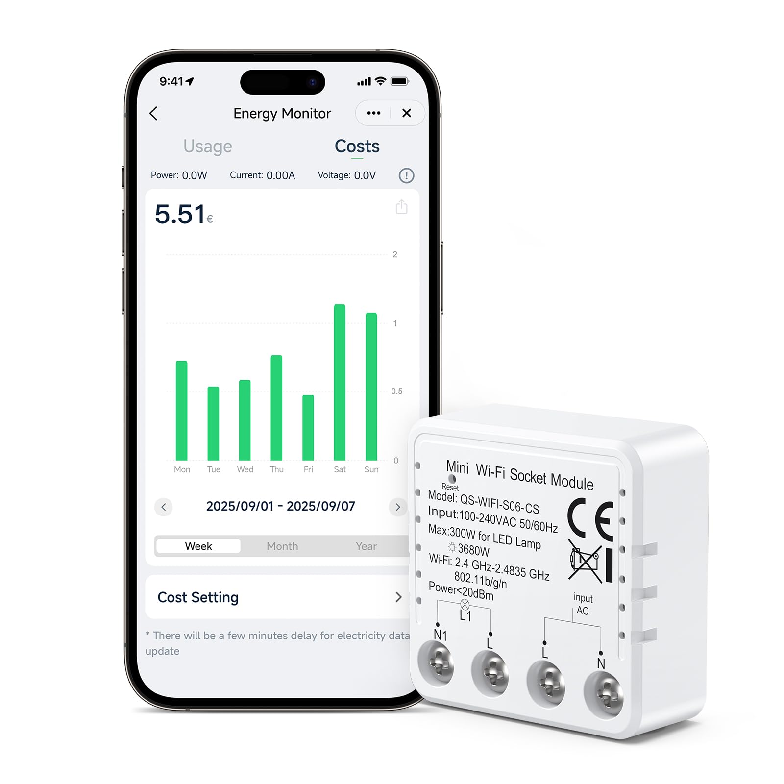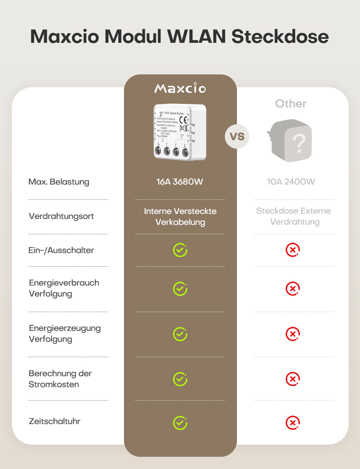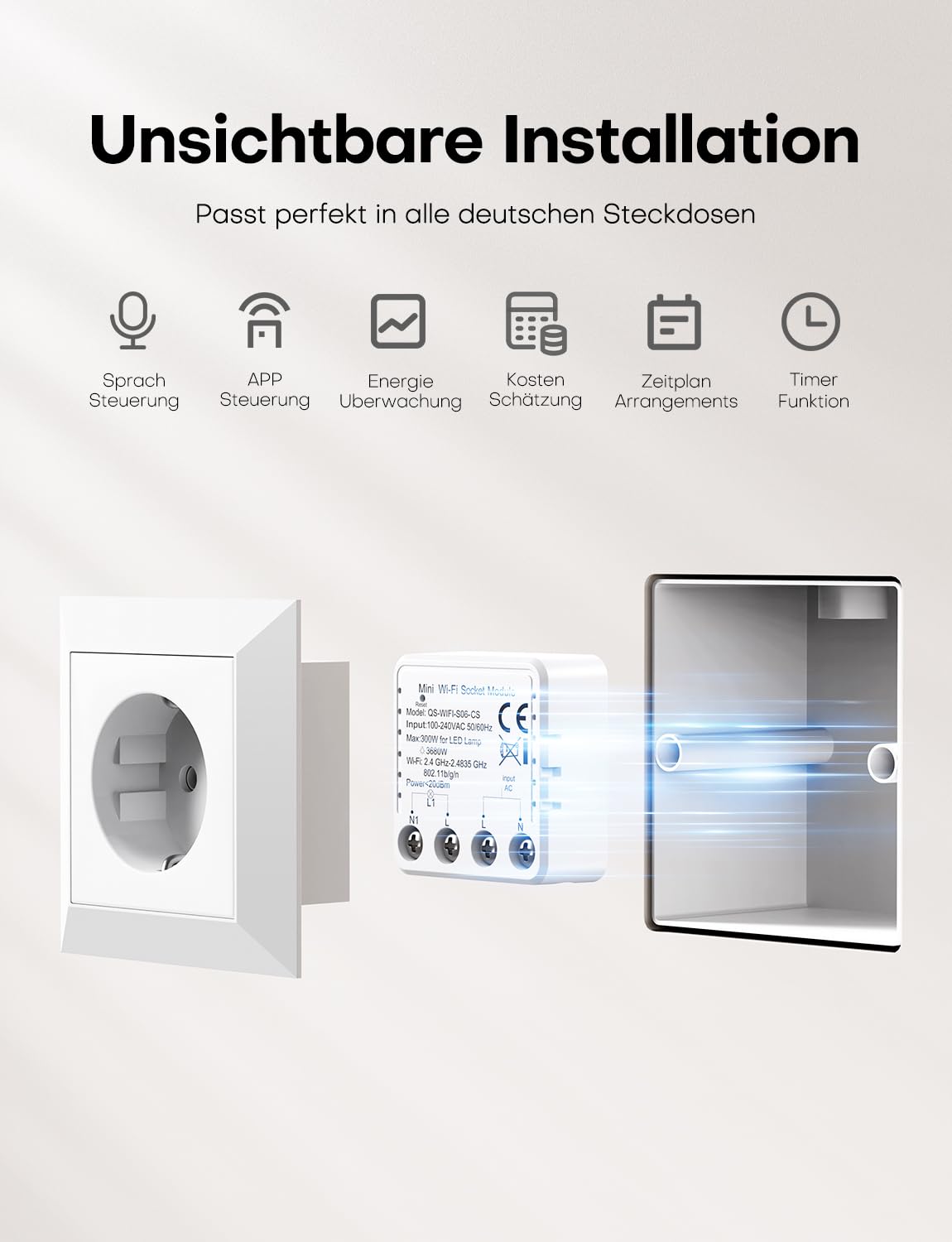 Nutipistikumoodul, valge, voolumõõtmise ja taimeriga (16A)